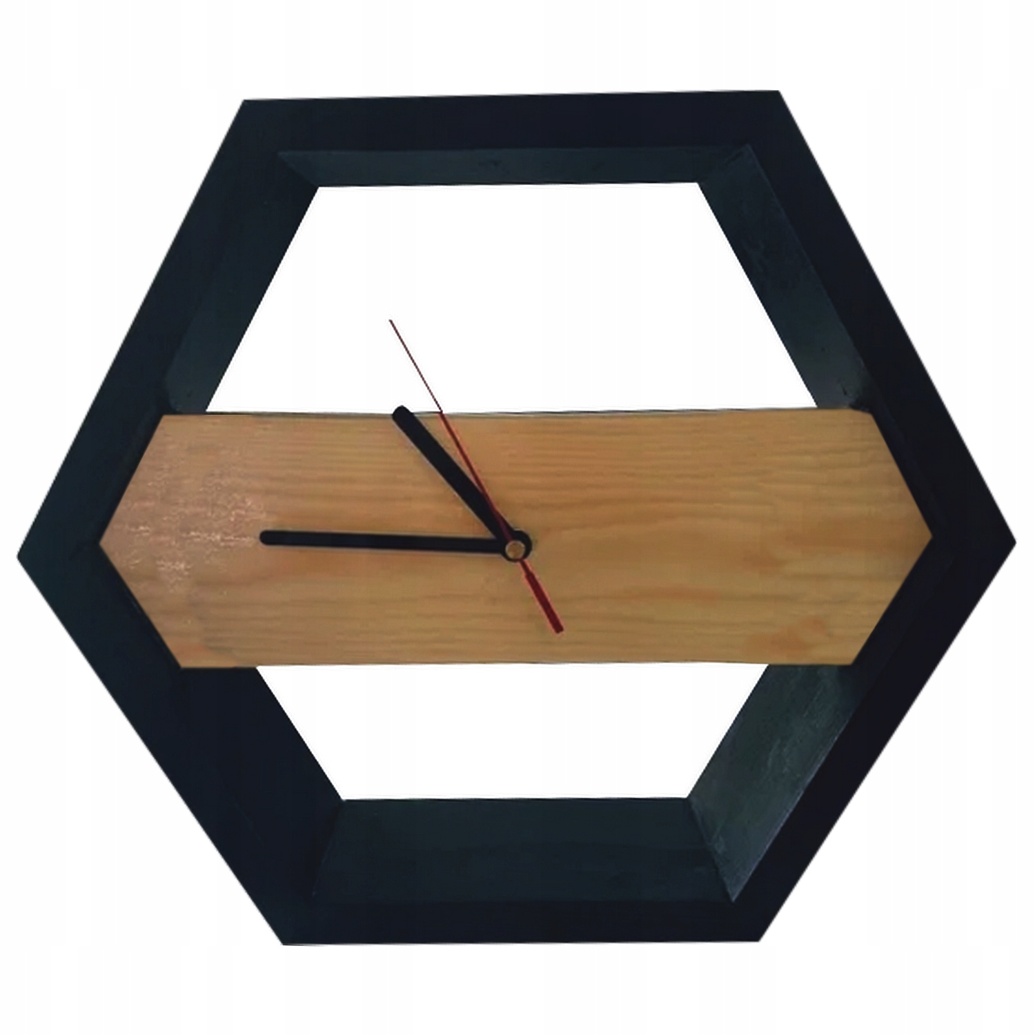 Мы предлагаем уникальные шестигранные часы, сделанные вручную из польского хвойного дерева. Эта уникальная полка не только выполняет функцию практического пространства для хранения, но также действует как стильные часы, что придает интерьеру современный и элегантный характер.