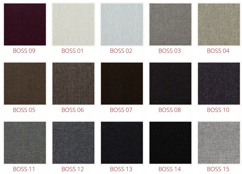 Коллекция BOSS – очень приятная и приятная ткань, слегка шероховатая. Это разновидность косы, структура которой ощущается на ощупь. Характеризуется высокой устойчивостью к истиранию и свету.