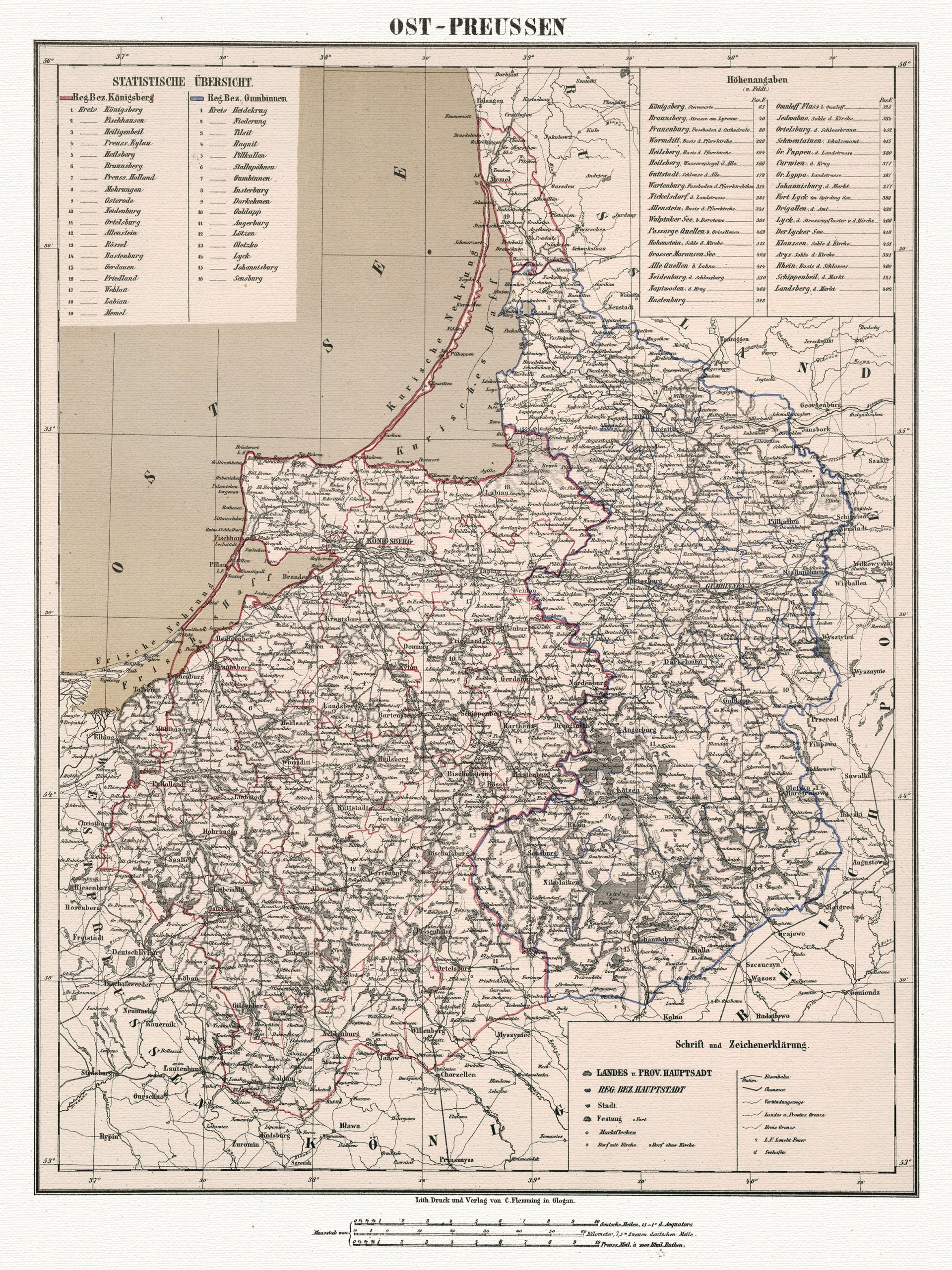 ВОСТОЧНАЯ ПРУСИЯ КОРОЛЕВСТВО ОЛЬШТЫН карта 1875 г. холст