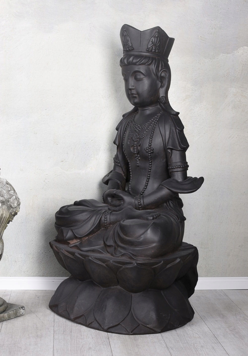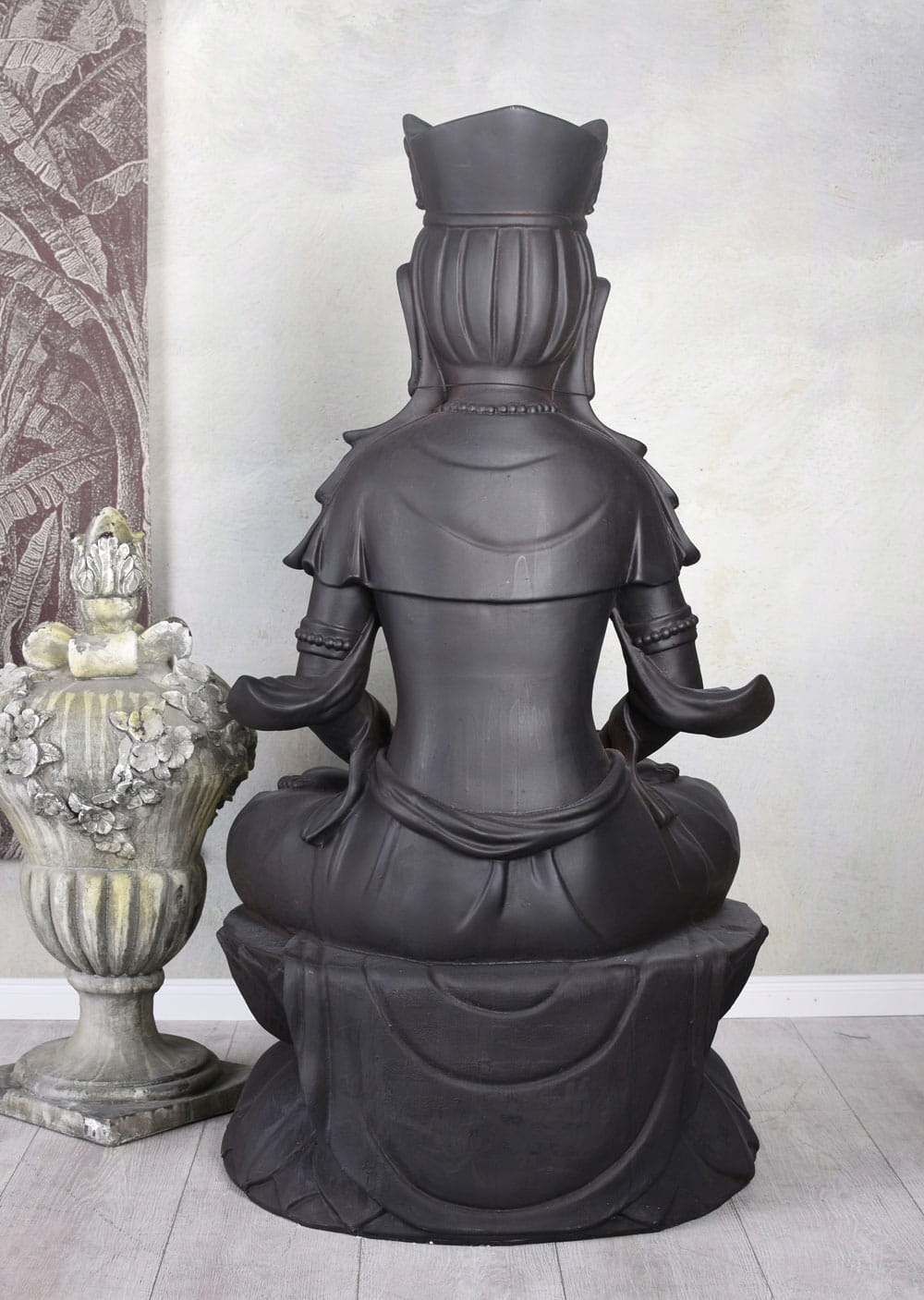 Большая садовая скульптура Чёрный Будда в позе лотоса