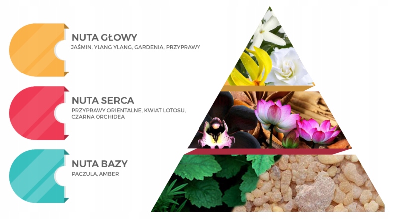 Ноты сердца – восточные специи меняют лицо композиции, сочетаясь с цветком лотоса и черным перцем Орхидея.