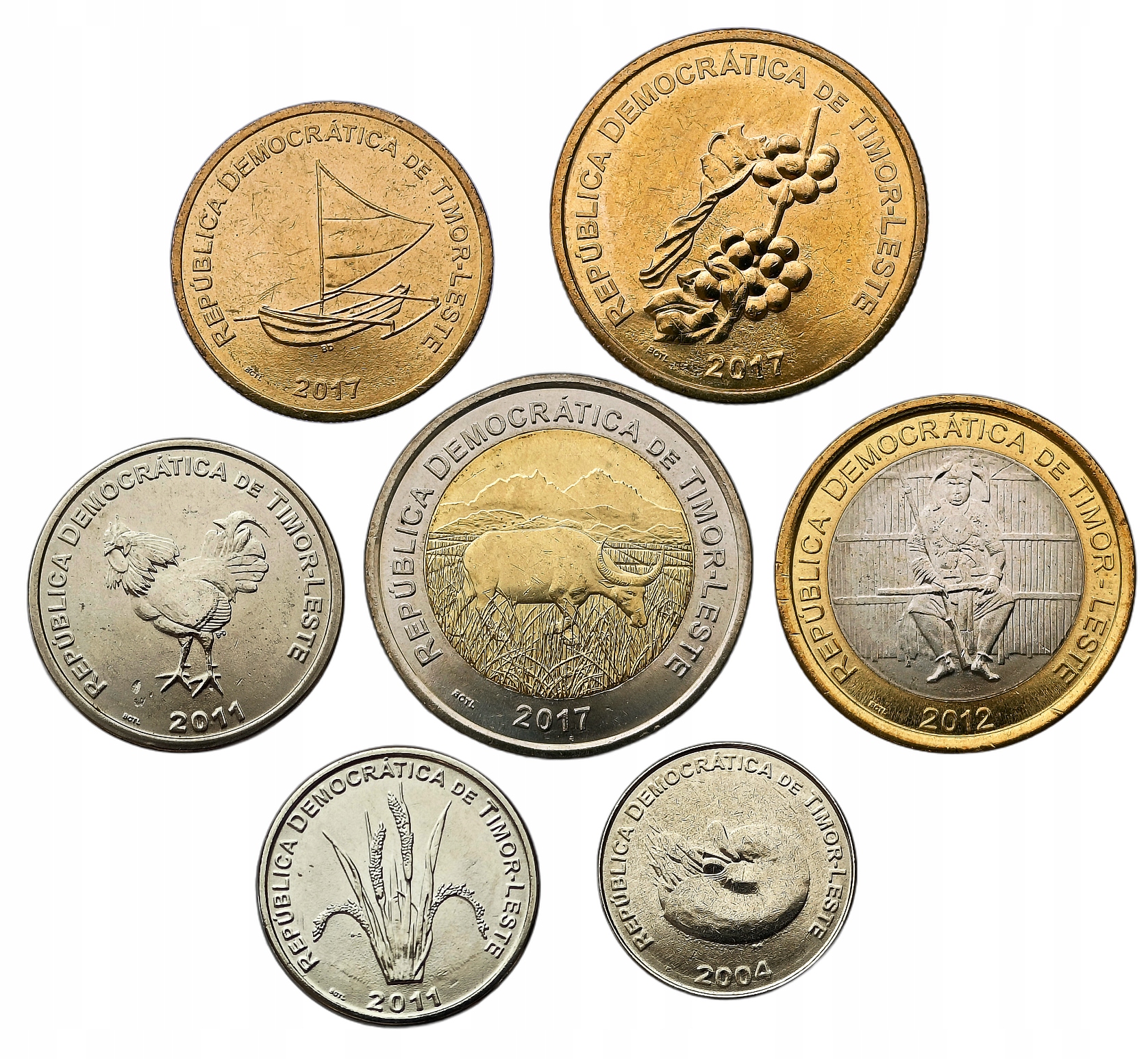 СХІДНИЙ ТИМОР НАБІР З 7 МОНЕТ 1 - 200 CENTAVOS 2004 - 2017 2x BIMETAL UNC
