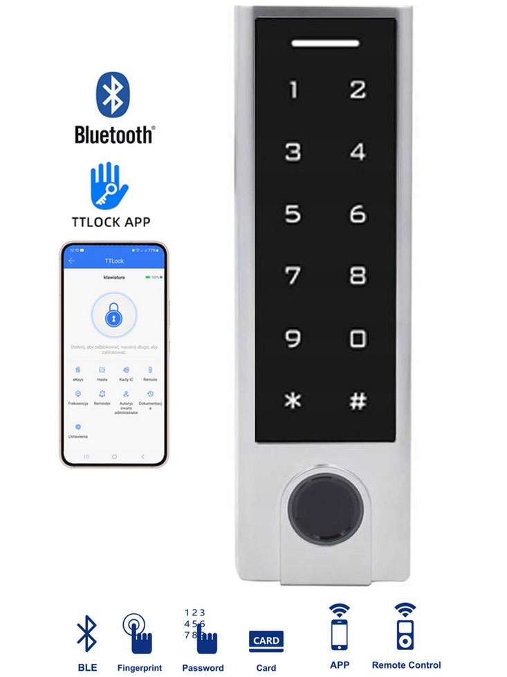 ШИФРАТОР КОДОВА КЛАВІАТУРА PIN КАРТА ВІДБИТОК BLUETOOTH ДОДАТОК КОД TTLOCK