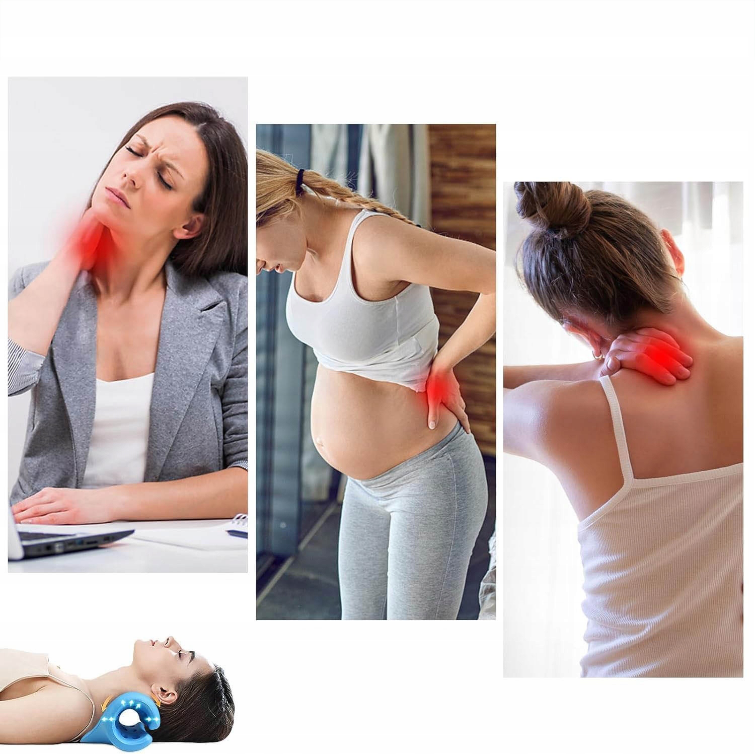 ❤️ Эргономичность дизайн:подстраивается под изгиб шейного отдела позвоночника человека, конструкция C-образной формы идеально подходит для шеи, естественно поддерживает шею, голову и плечи, обеспечивает вертикальную, горизонтальную и другую трехмерную кривую поддержку и тягу во время использования, снимает боль и усталость мышц шеи и плеч. двусторонняя вогнуто-выпуклая конструкция позволяет начинающим пользователям лучше регулировать процесс.