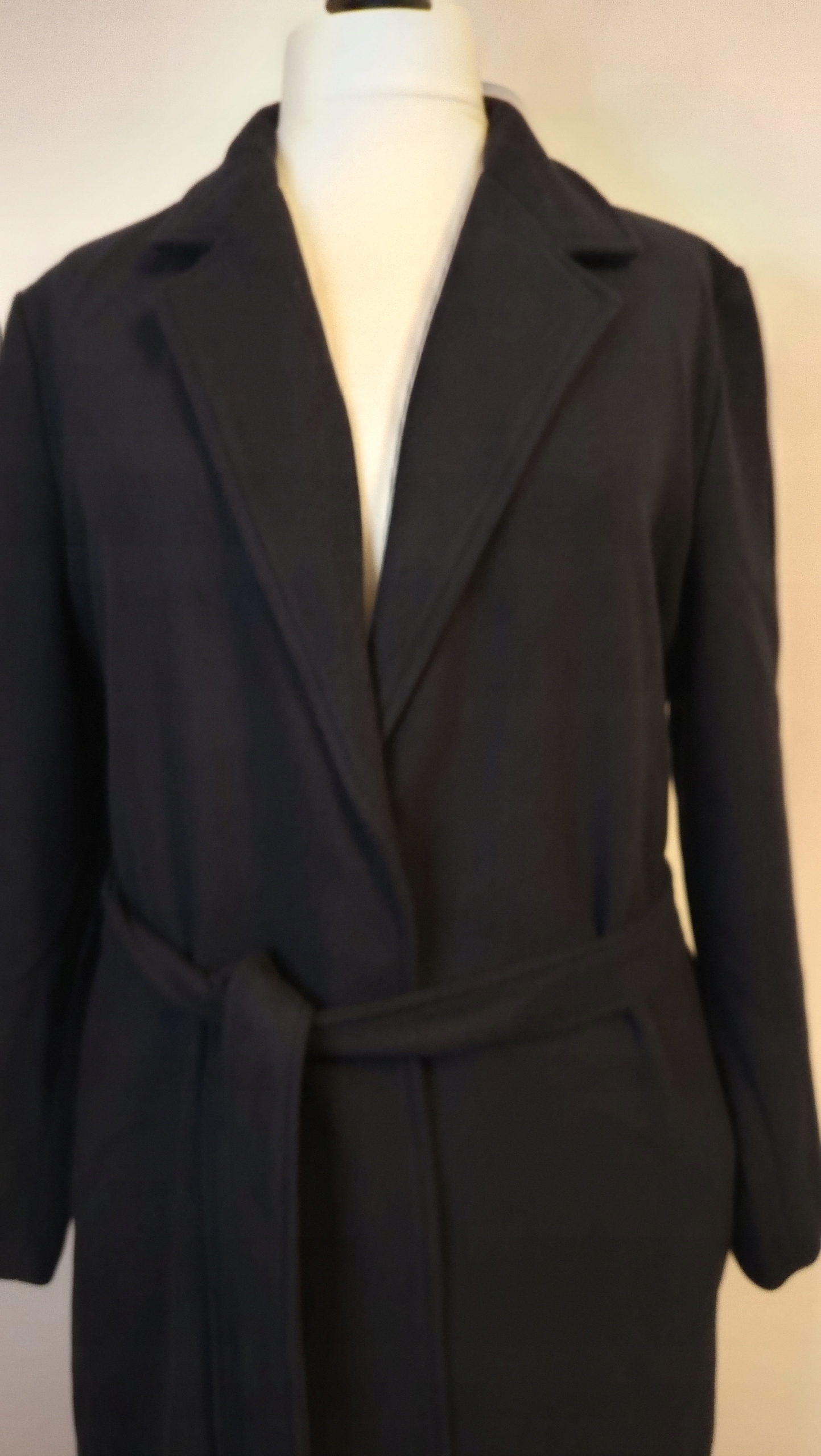 Темно-синее осеннее переходное пальто на завязках, размер 50
