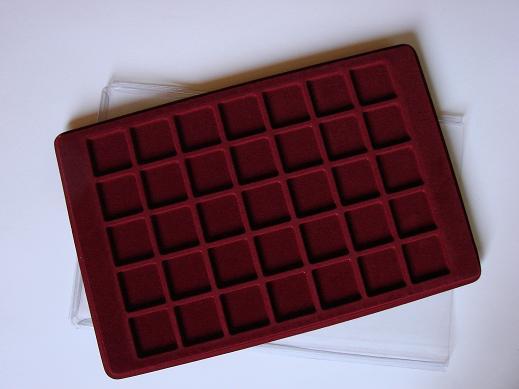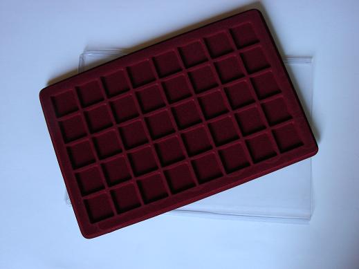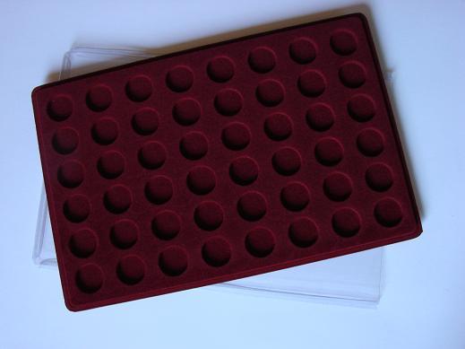 Поддон подготовлен для размещения 77 монет. Размер окна 23мм х 23мм Совершенно новый поддон общими размерами 330х225мм с защелкой из закаленной фольги.