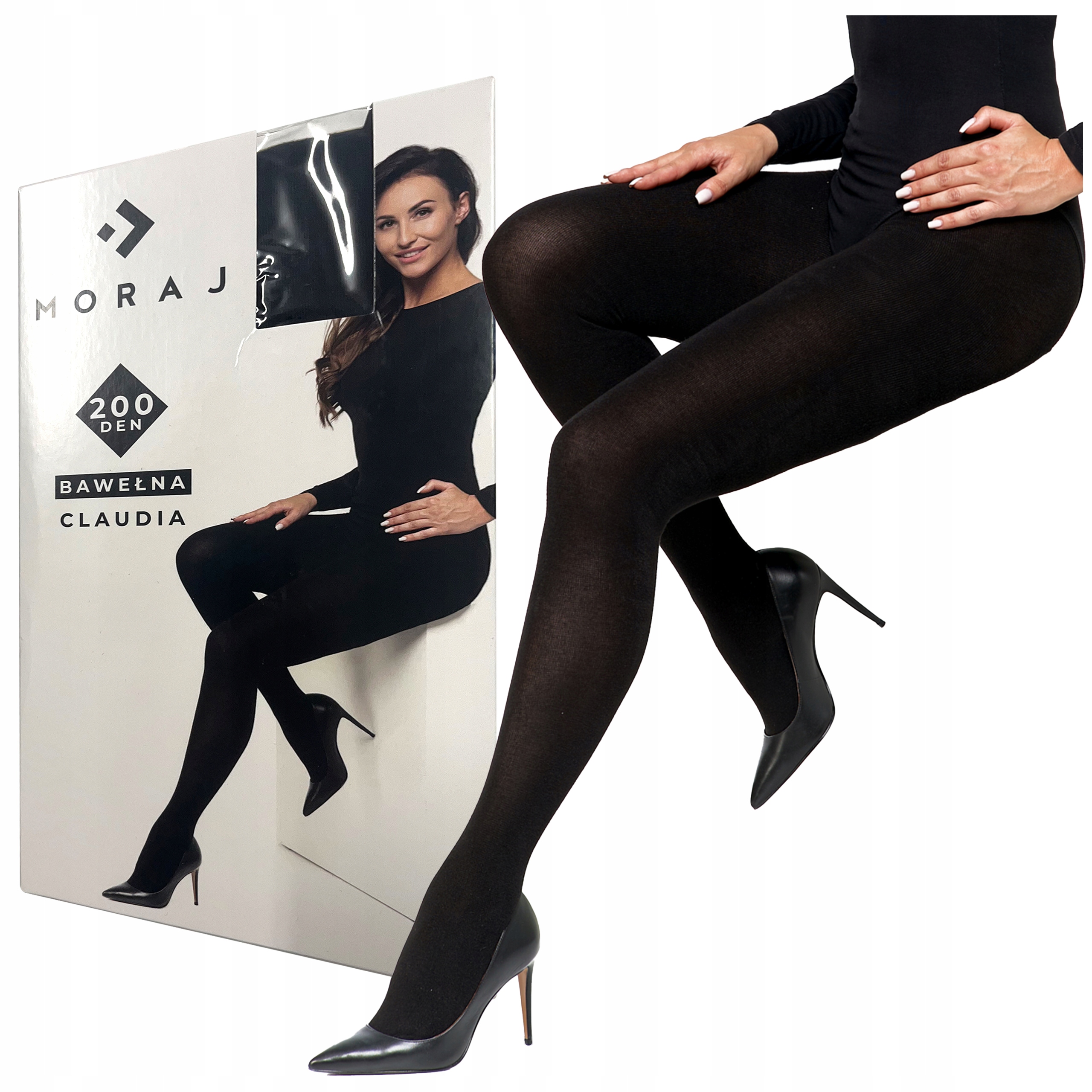 КОЛГОТКИ ЖЕНСКИЕ ПЛОТНЫЕ, черные, хлопок 200 DEN MORAJ, размер 4