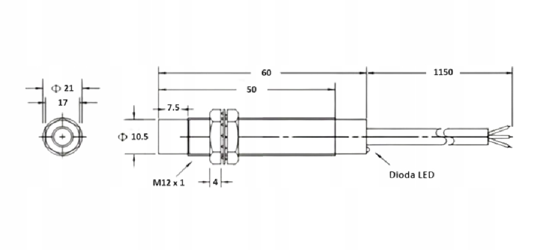 позволяет обнаружить металлические элементы, что приводит к отправке сигнала (нет - обычно открыто) или его прерывание отправленного сигнала (NC - обычно закрыто). Датчик NO сигнализируется диодом, который сияет при обнаружении металла.
