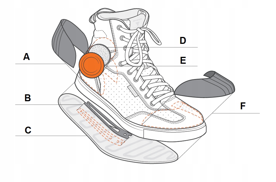 - БЕЗОПАСНОСТЬ - имеют усиленную пятку, пальцы ног и лодыжку, поддерживаемые пенопластовым амортизатором ArmorPlus. поглотители. Голеностопный сустав оснащен защитой лодыжки SAP из ТПУ, которая обеспечивает дополнительную поддержку – для большей устойчивости и уверенности в движении.