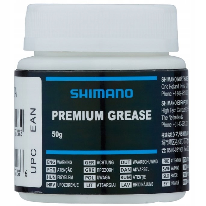 Shimano Premium Grease — высококачественная смазка для подшипников ступиц, рулевых колонок и кареток с резьбой. Особенно рекомендуется для групп Shimano Dura-Ace, Ultegra, XTR или XT. Эта смазка также рекомендуется для резьбы и болтов кривошипа Hollowtech II. Характеризуется исключительной прочностью и гидрофобными свойствами.