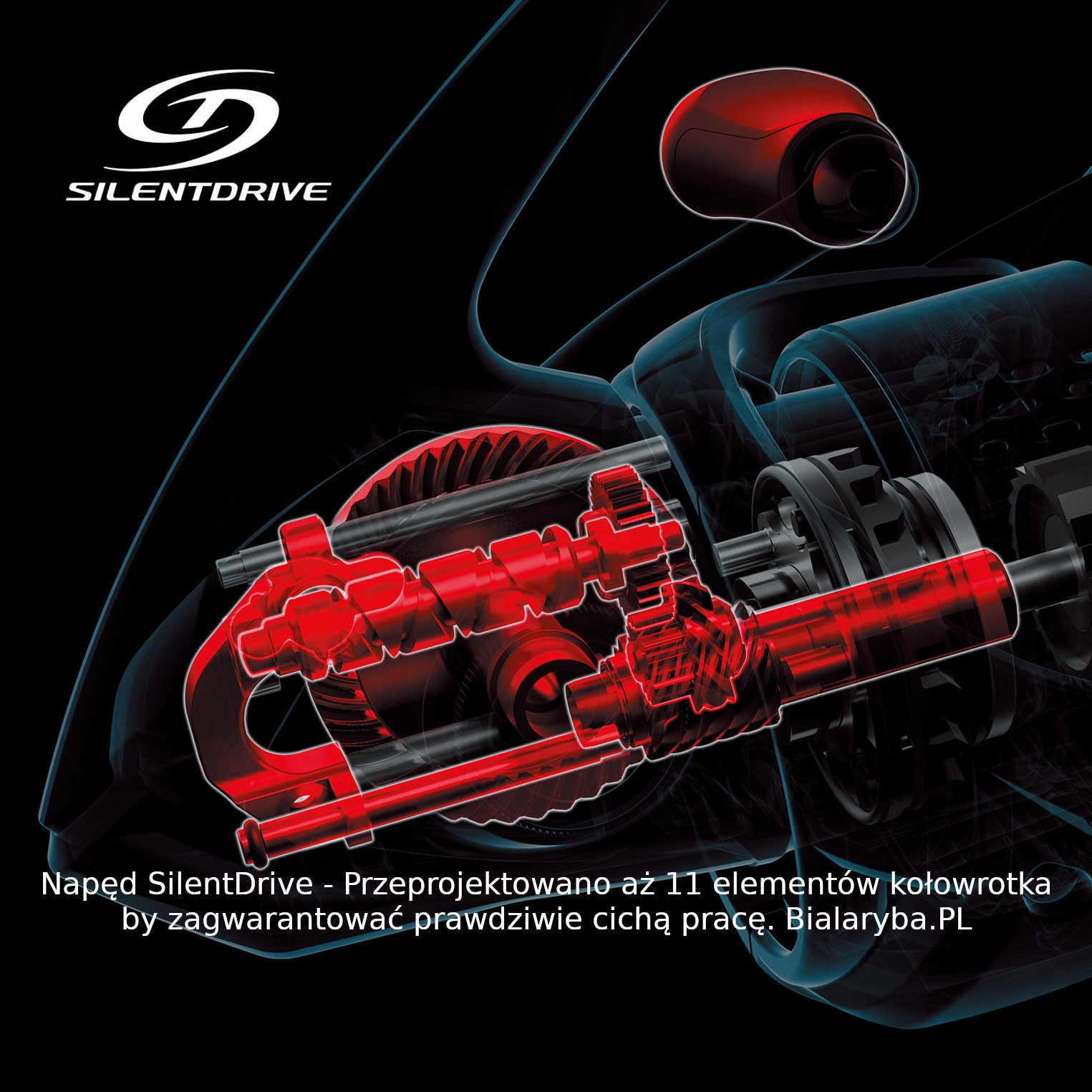 - g Свободное тело - G -беззамашная технология тела была разработана для передачи центра тяжести катушки в сторону стержня. Это было достигнуто путем перемещения приводного вала на 19 мм вверх. Благодаря этому агент был перемещен в сторону руки рыболова, обеспечивая лучшую эргономику и большую легкость использования и, следовательно, - меньше усталости руки.