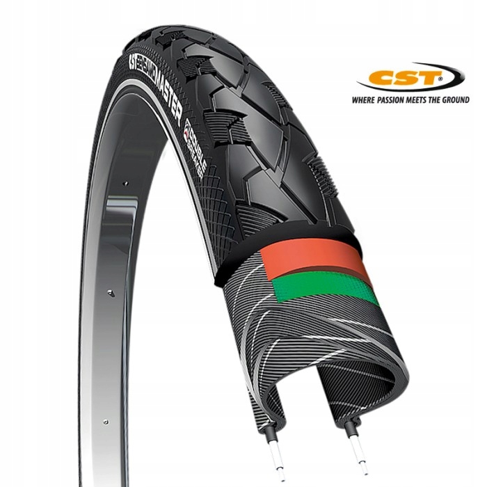 Шина марки CST. Модель СЕНСАМО МАСТЕР. Размер: 700 х 38С (40-622). Друтова, 60ТПИ. Защита: EPS (Резиновая вставка с полиамидными волокнами) + APL (Резиновая лента 0,7 мм). Подходит для электронного велосипеда (максимум 50 км/ч). Светоотражающая полоса.