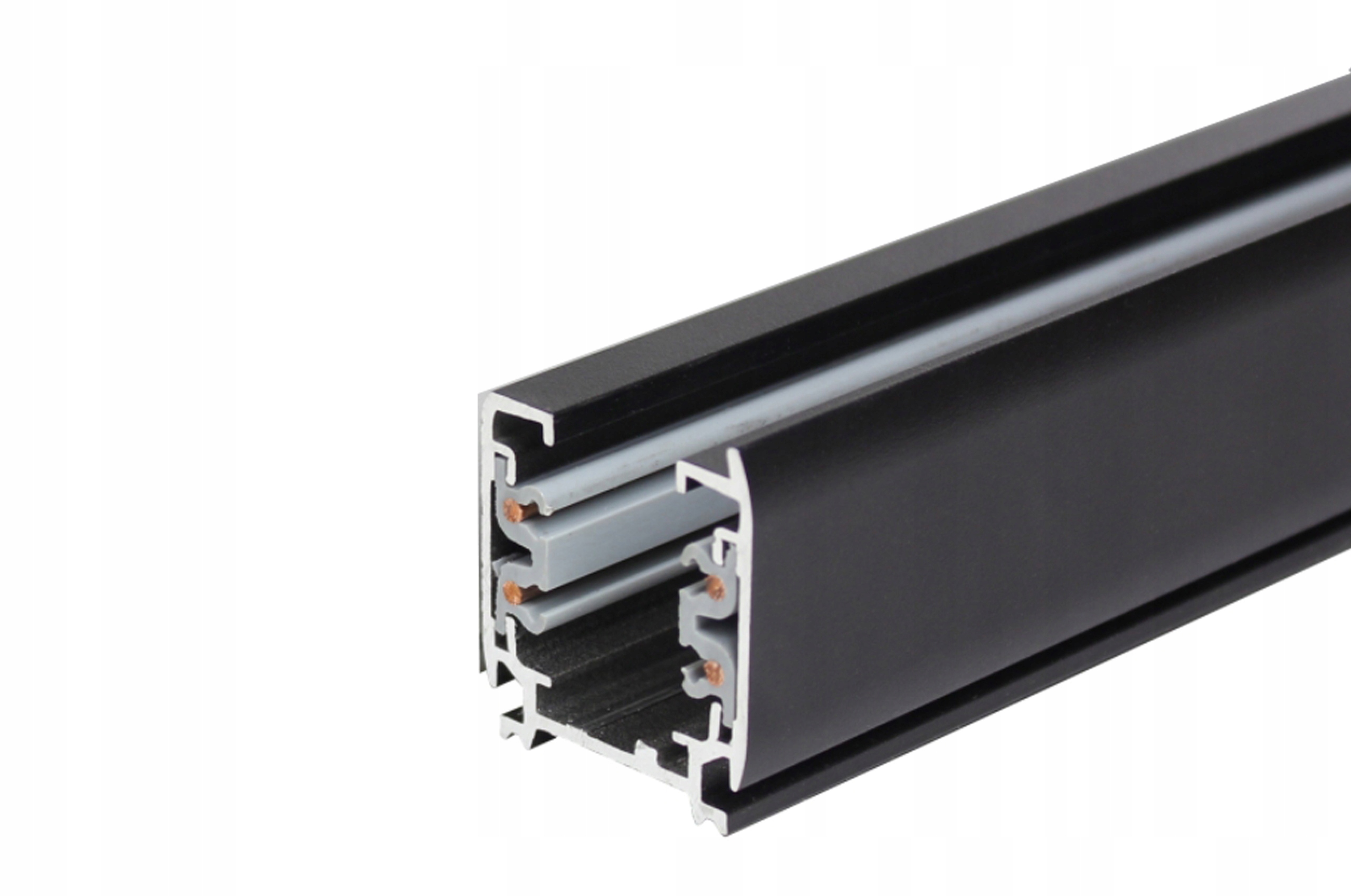 Черная шина 3F длиной 1 м, изготовленная из черного алюминиевого профиля, длиной 1 м, оснащенная тремя независимыми цепями с длительной токовой нагрузкой. Это позволяет создавать неограниченные и быстрые композиции с использованием светодиодных точечных светильников, работающих в трехфазной системе.