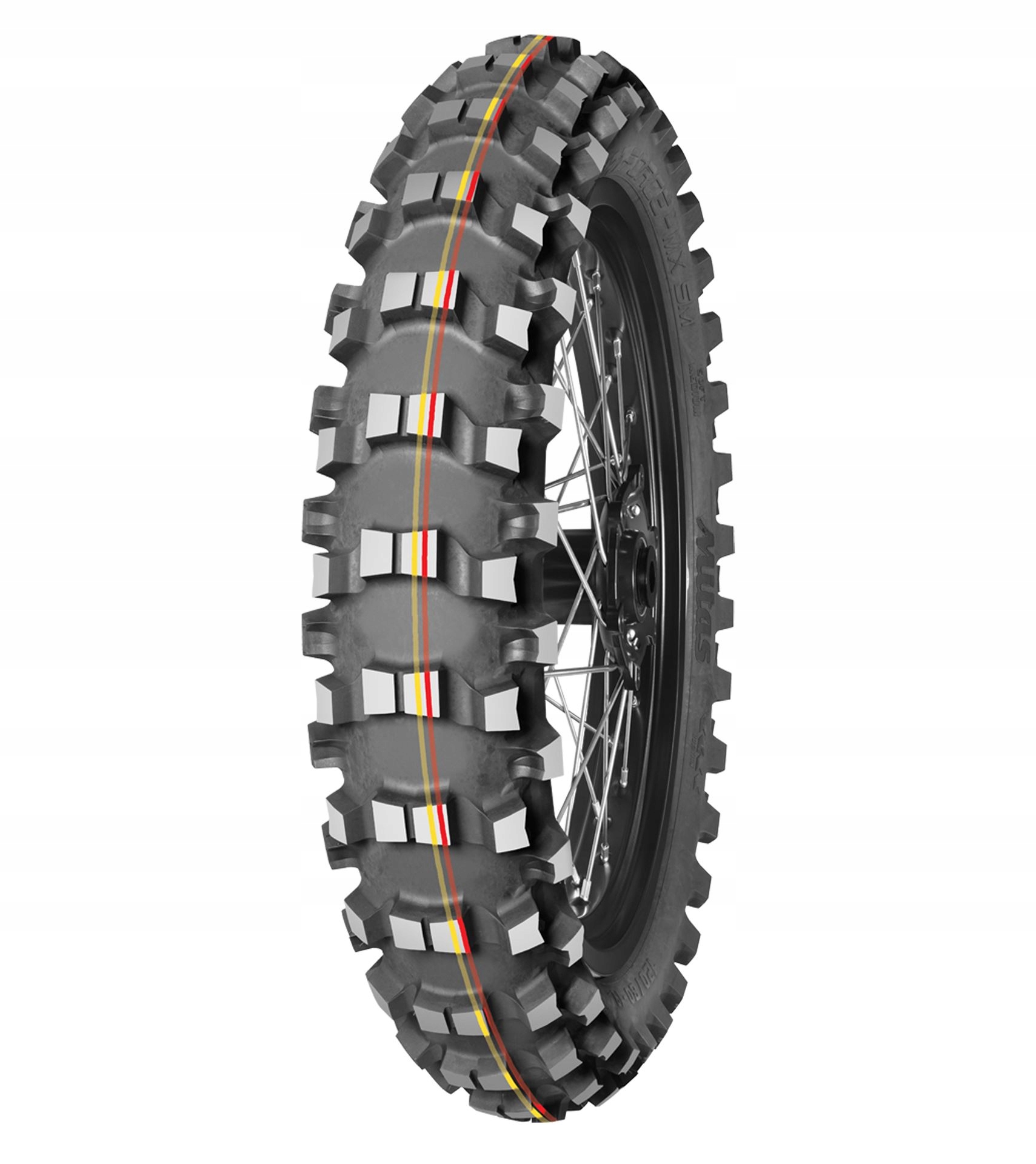 MITAS TERRA FORCE-MX SM (SM – Soft/Medium) – покрышки для мотокросса для мягких или средний рельеф (SM – Soft/Medium – Soft/Medium). Этот тип шин имеет коническую конструкцию выступов, которые фактически прорезают путь по мягким поверхностям, обеспечивая надлежащее сцепление с дорогой. Для усиления покрышки и обеспечения более длительного срока службы к основанию крепят кубики с большим расстоянием между ними. Смесь мягче, чем версия SAND.