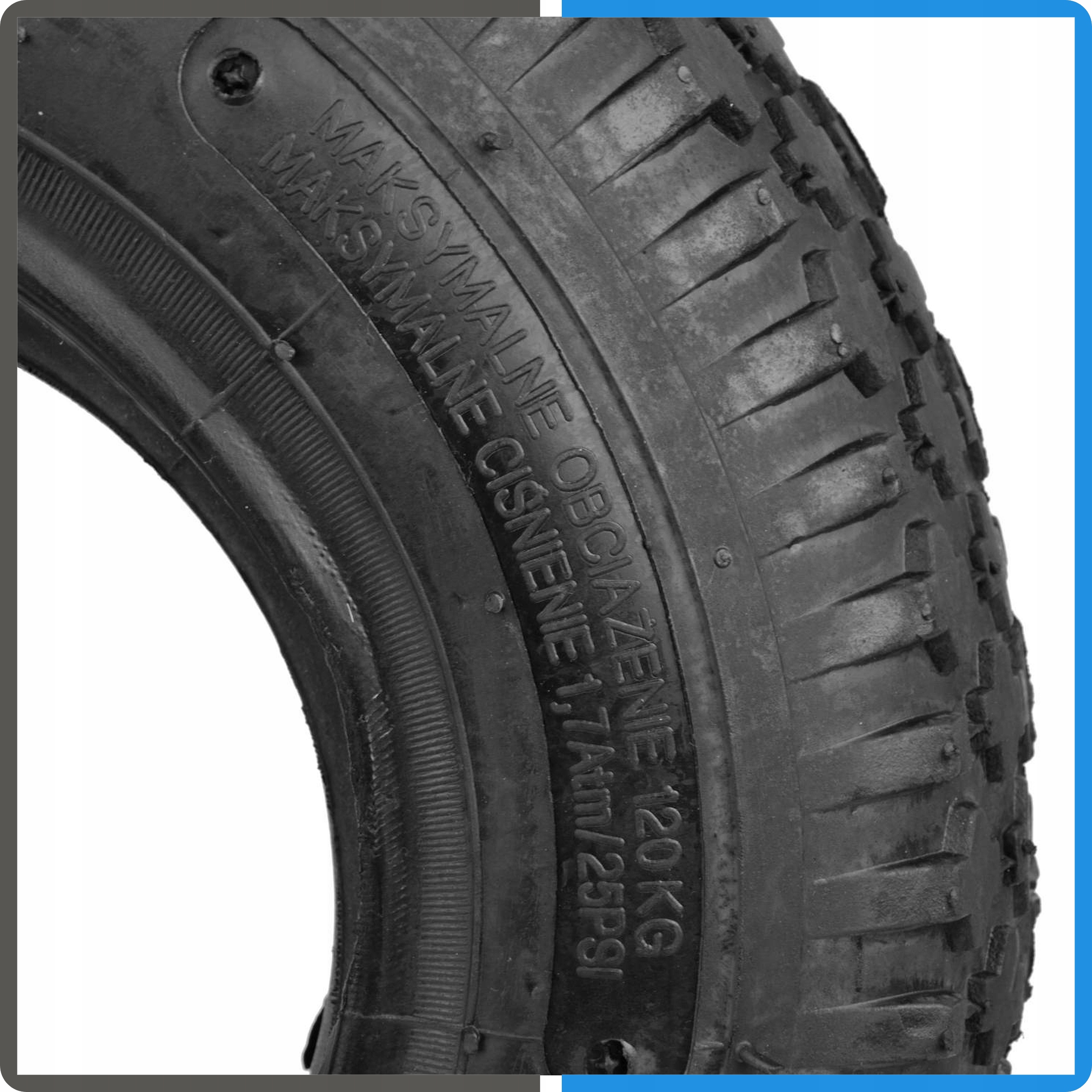 Сплошные шины 4,80/4,00-8 готовы к немедленной установке. Идеальное решение для тачек, садовых тележек и транспортных платформ.