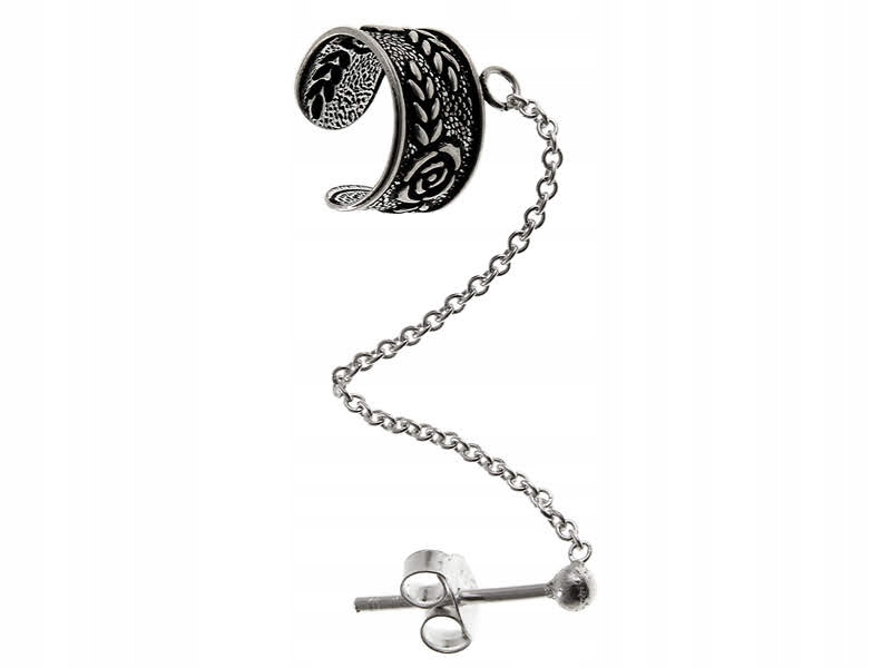 Серьги из серебра 925 пробы, серьга размещается на верхней части ушной раковины, а шпилька - в ушном отверстии. Серебро специально затемнено (античный стиль)