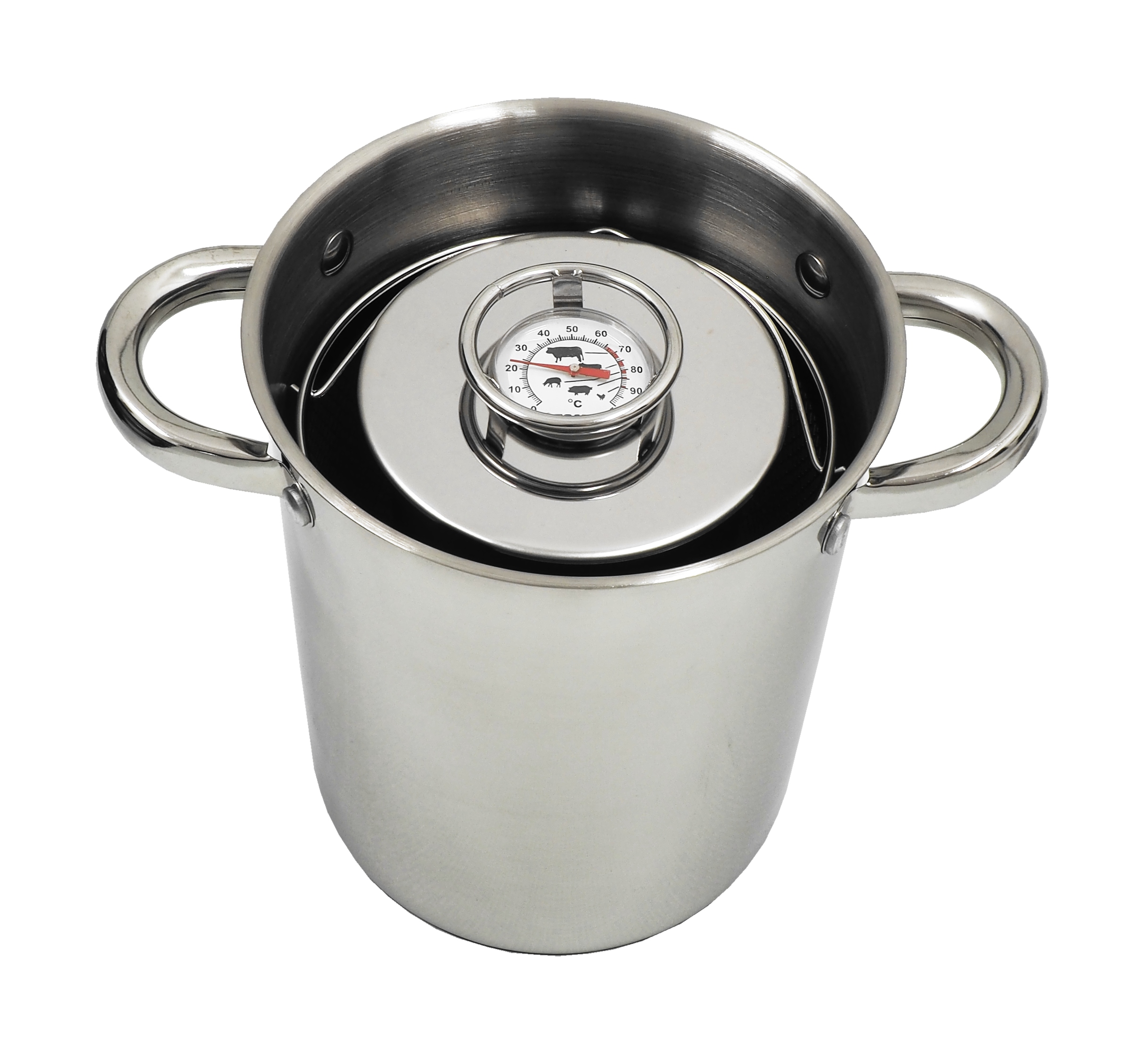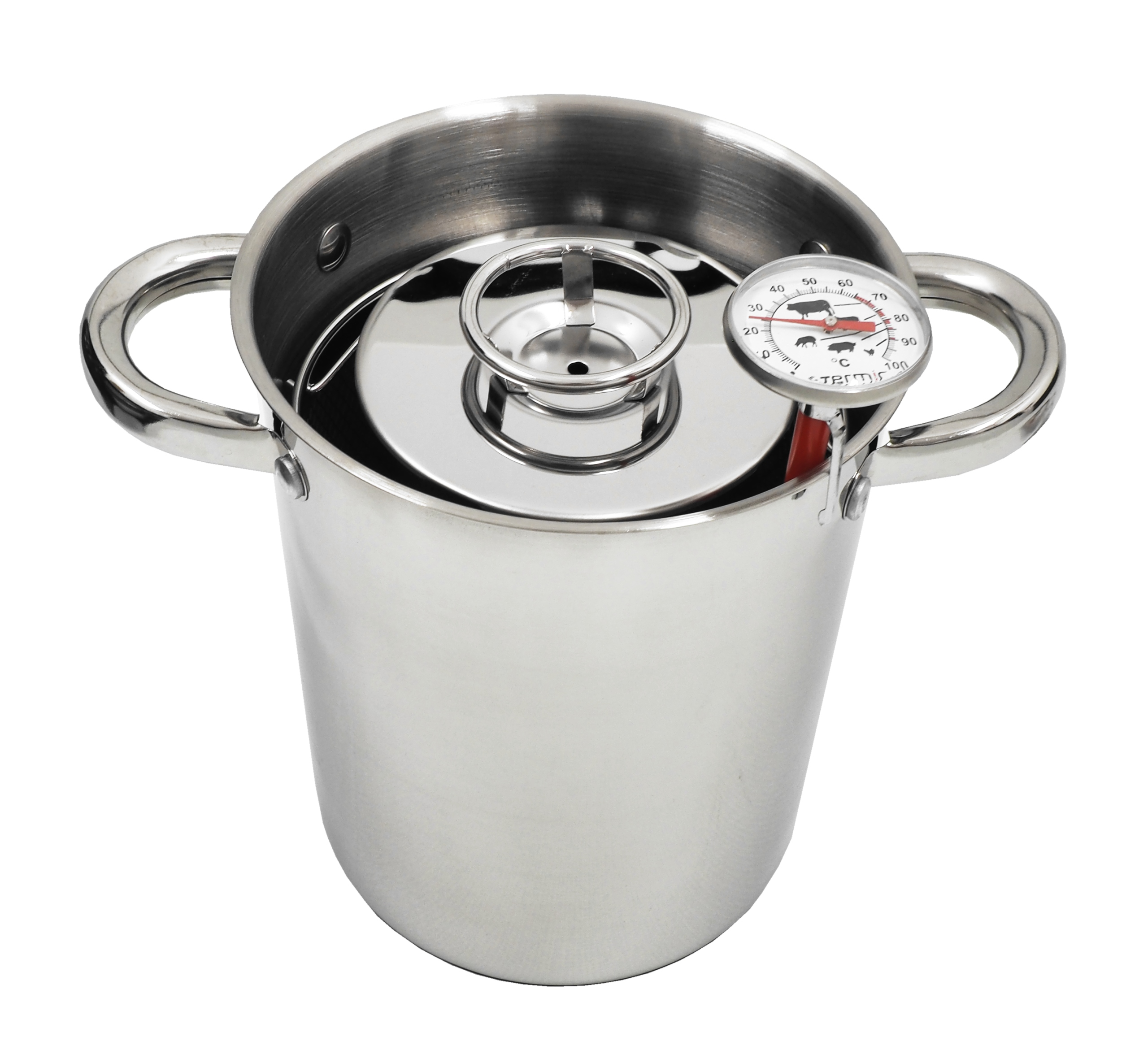 ПОВАРКА ДЛЯ ТАМОВ ИЗ НЕРЖАВЕЮЩЕЙ СТАЛИ — предназначена для приготовления вкусного домашнего мяса на пару. Изготовлен из нержавеющей стали. Позволяет готовить до 1,5 кг мясного продукта за один раз. В центре крышки имеется гнездо с отверстием, позволяющим непосредственно измерять температуру мяса. Для этой цели используется термометр с щупом, входящий в комплект.
