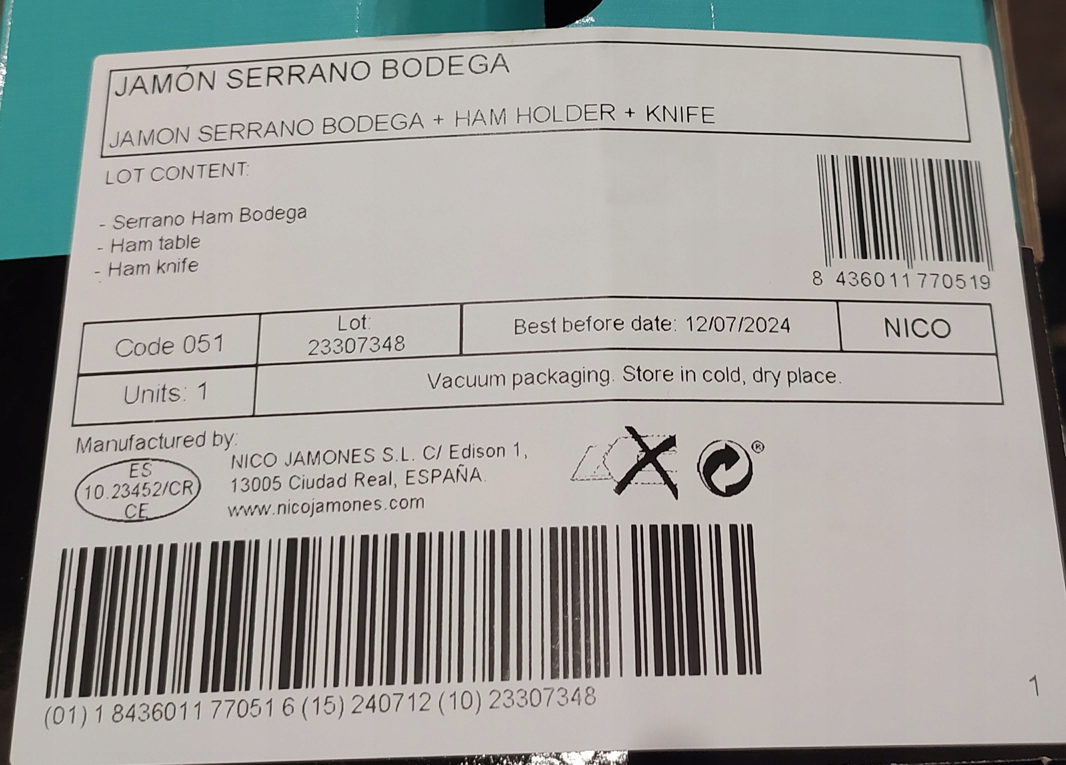 ШИНКА ІСПАНСЬКА SERRANO BODEGA 6,4 кг + ПІДСТАВКА + НІЖ