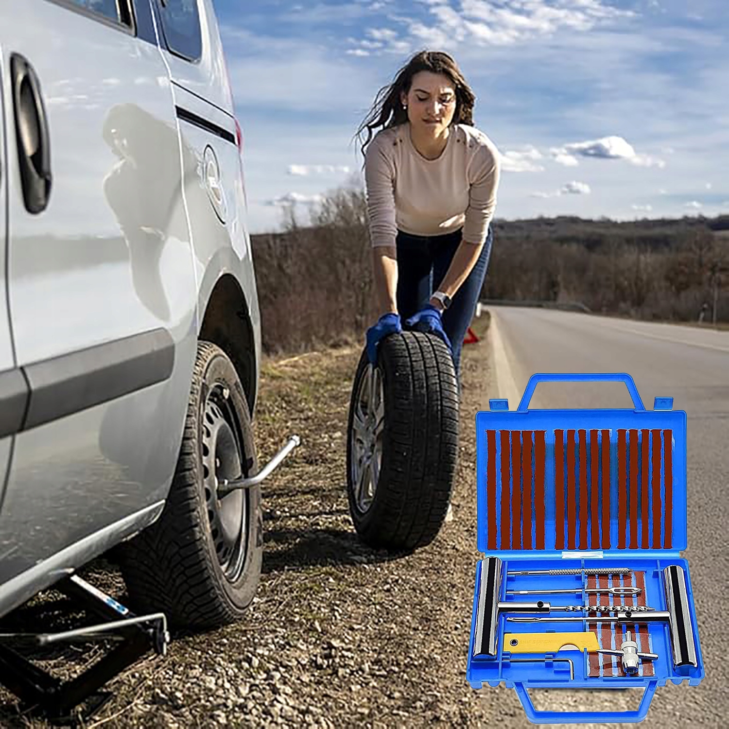 Шиноремонтный комплект в удобном и компактном кейсе для удобства транспортировки и хранения.