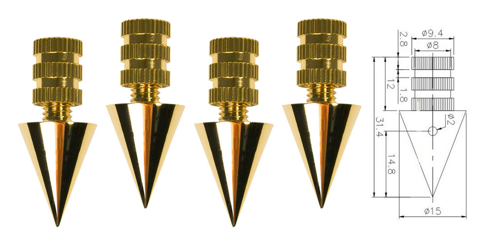 Золотой антивибрационный шип, изготовленный с высочайшей точностью из лучших материалов.