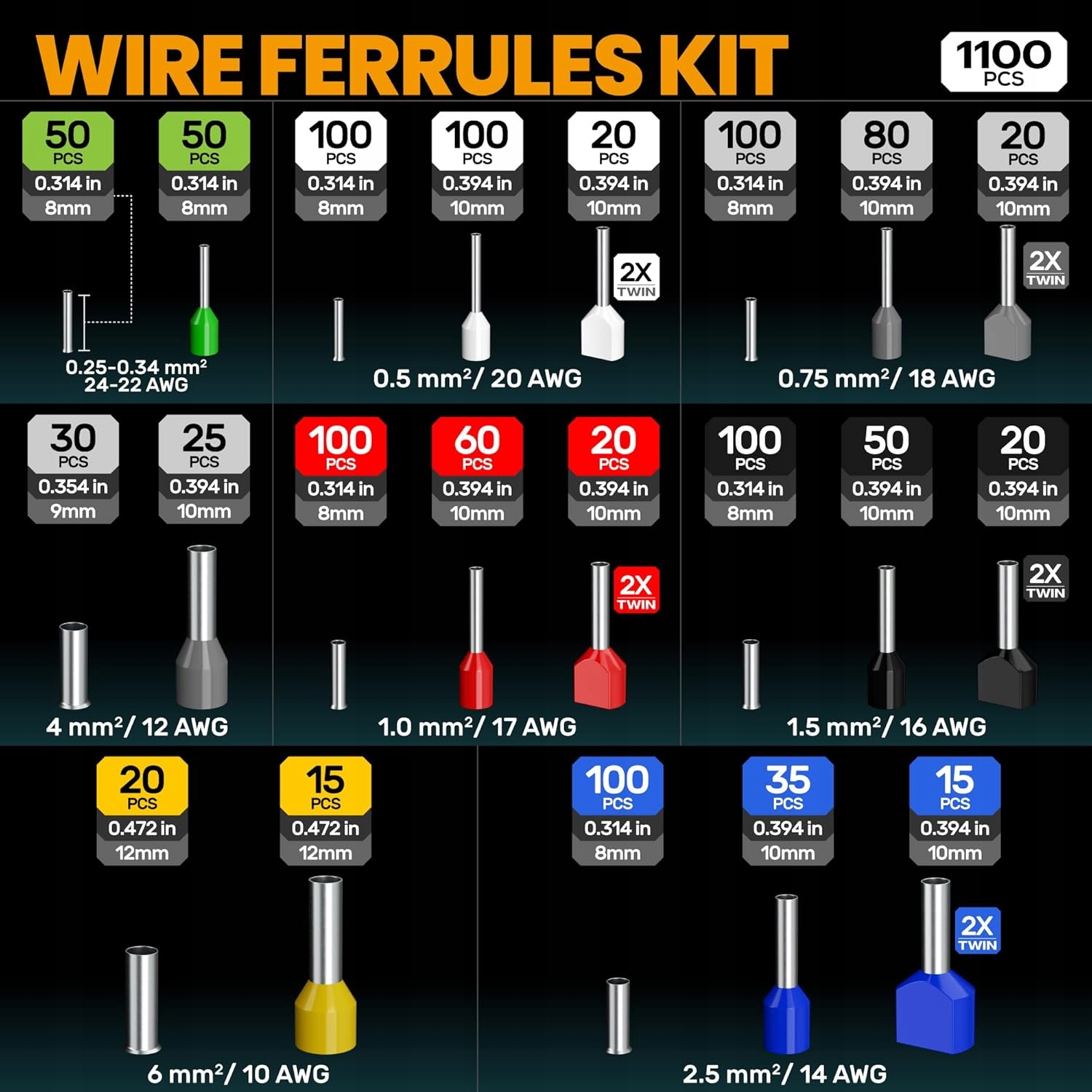 - ❤️21 вид различных разъемов: В том числе 21 вид изолированных и неизолированных наконечников для проводов сечением 0,25–6 мм². Достаточное количество и разная длина могут удовлетворить все ваши потребности. Широко используется в различных случаях и является идеальным выбором для профессиональных электриков и любителей DIY.