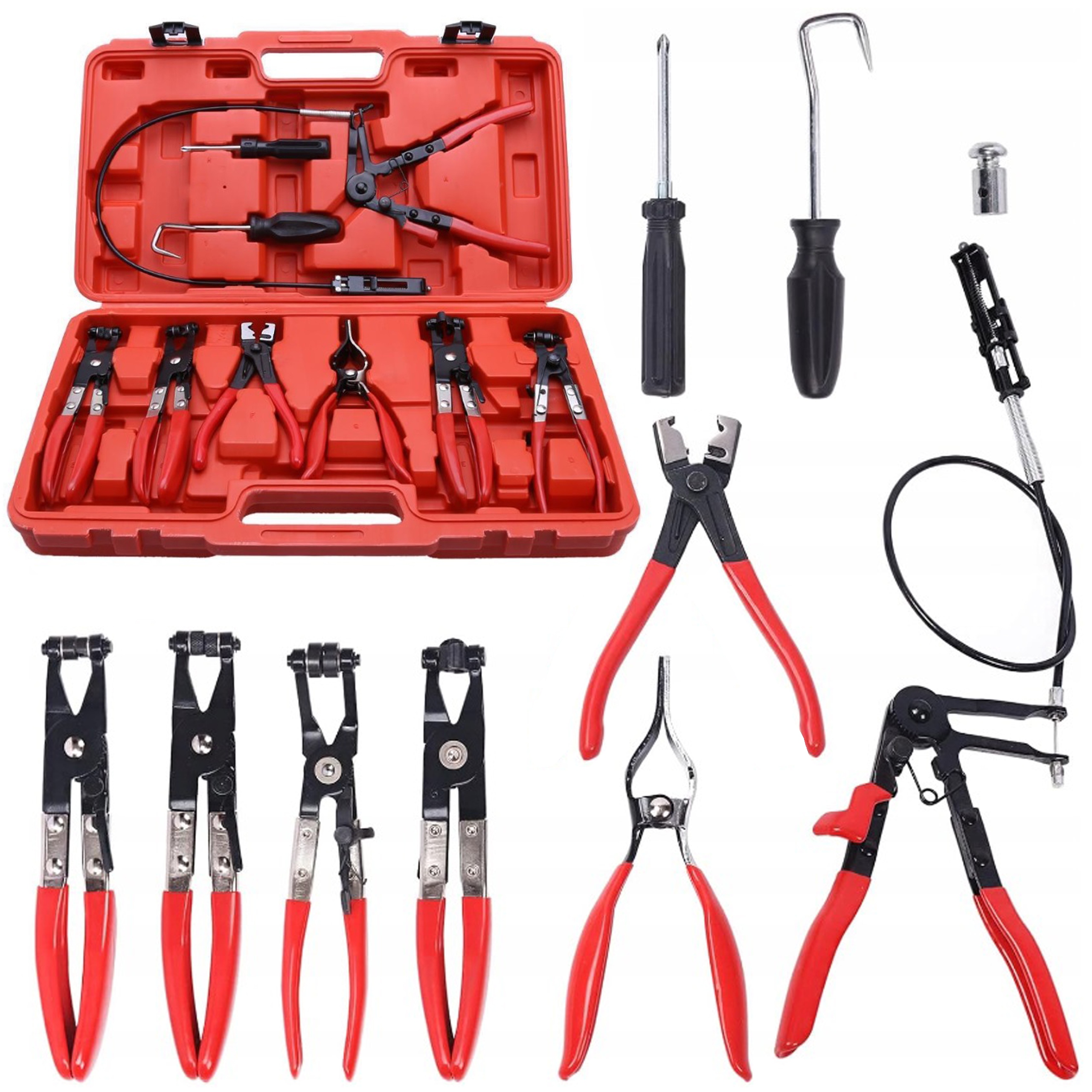 Головные пассатижи для узких струбцин – позволяют надевать и снимать струбцины в труднодоступных местах. Изогнутые губки и вращающиеся наконечники позволяют захватывать ленту под разными углами крепления. Они также оснащены фиксатором зажима, что делает работу безопасной.