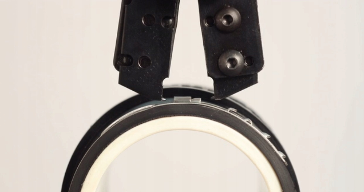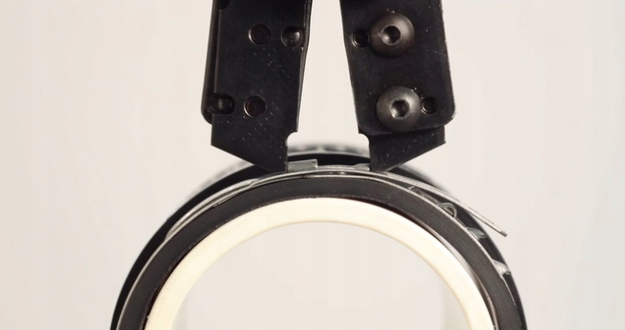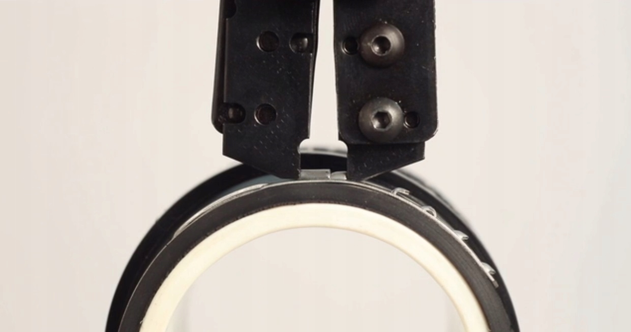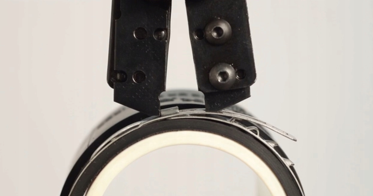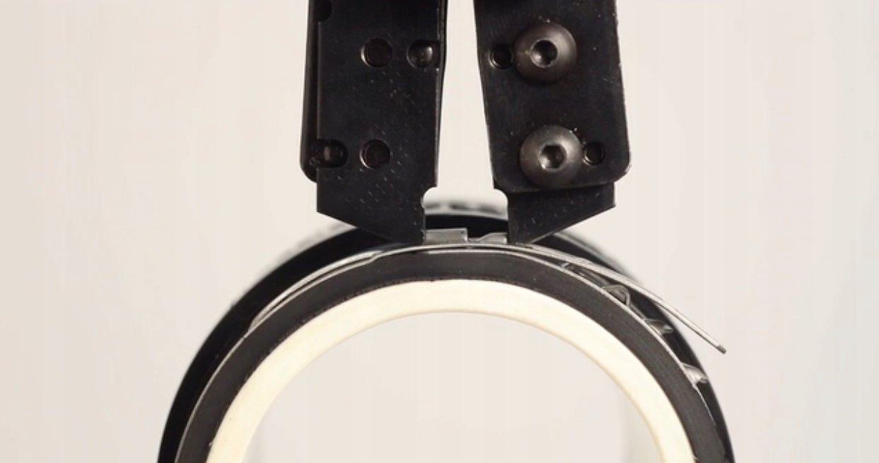 Закрытие инструмента приводит к зацеплению и натяжению. туннеля ближе друг к другу, уменьшая диаметр внутренней полосы. Чтобы таким образом сохранить уменьшенный диаметр, отверстия натягиваются на стопорный крючок, который при ослаблении давления инструмента попадает в отверстия и фиксируется в соответствующем положении.