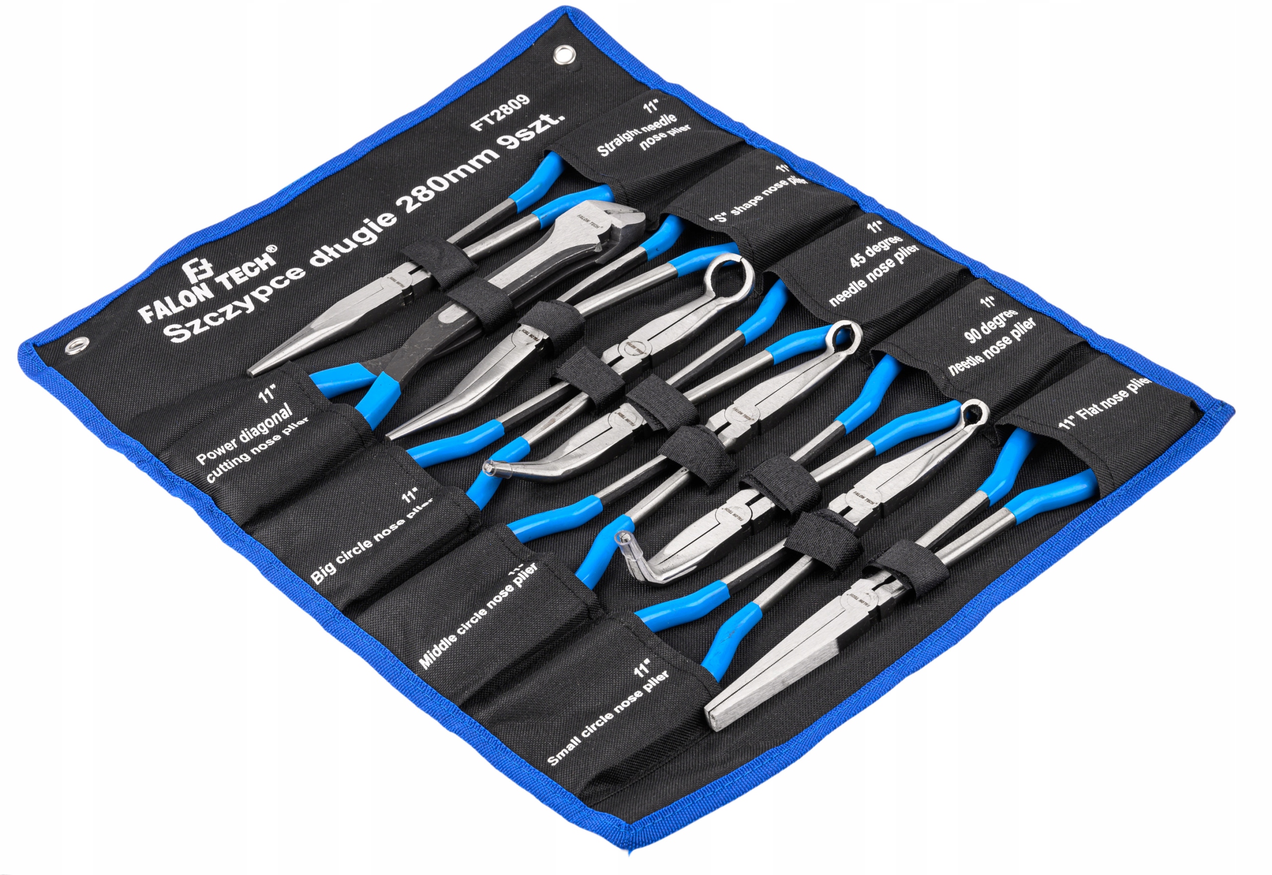 Набор из 9 длинногубцев 280 мм, прямых, плоских, изогнутых, кусачек, для кабелей зажигания, с наклоном 90° - 0° - 20 ° - 45 °.