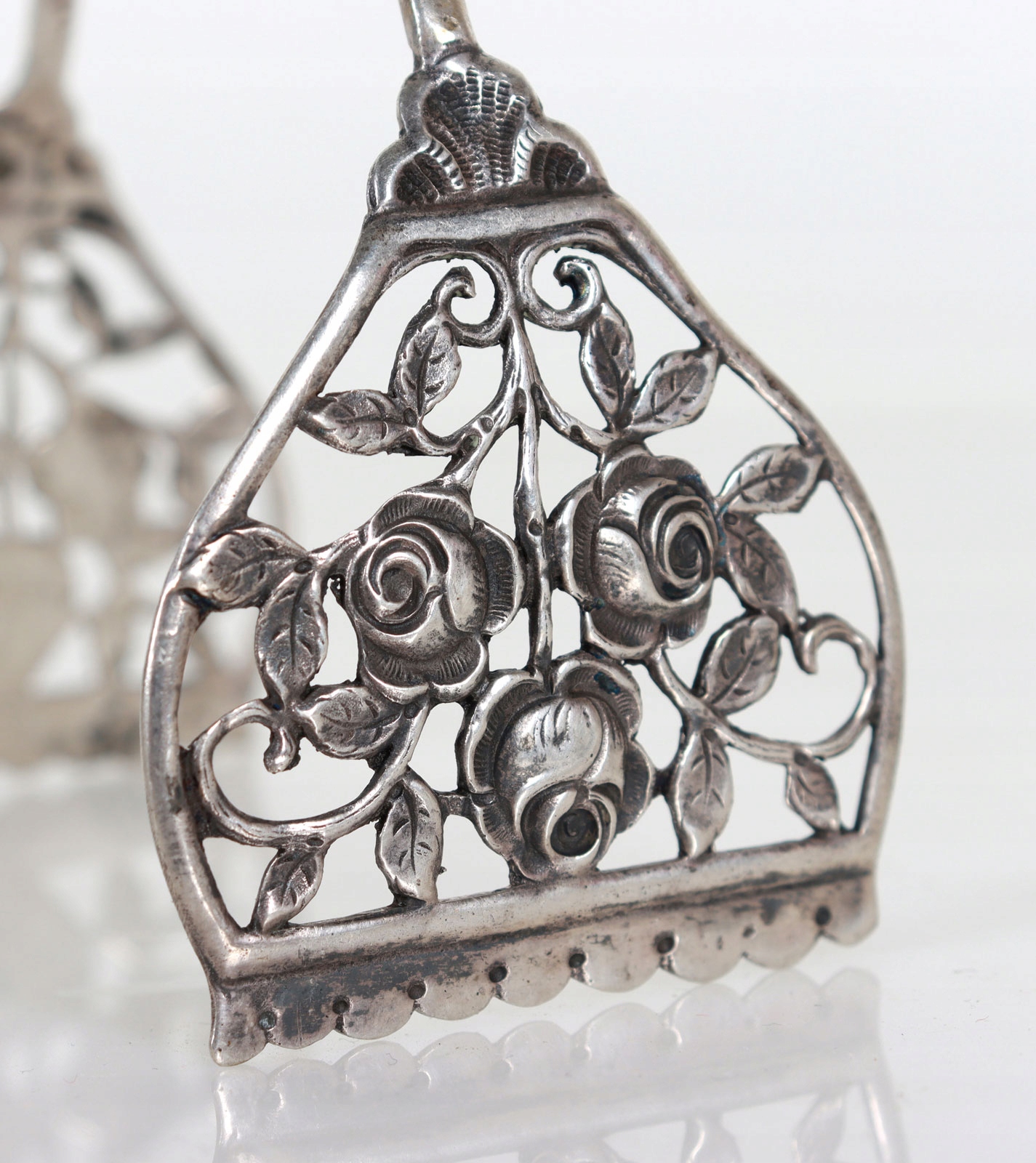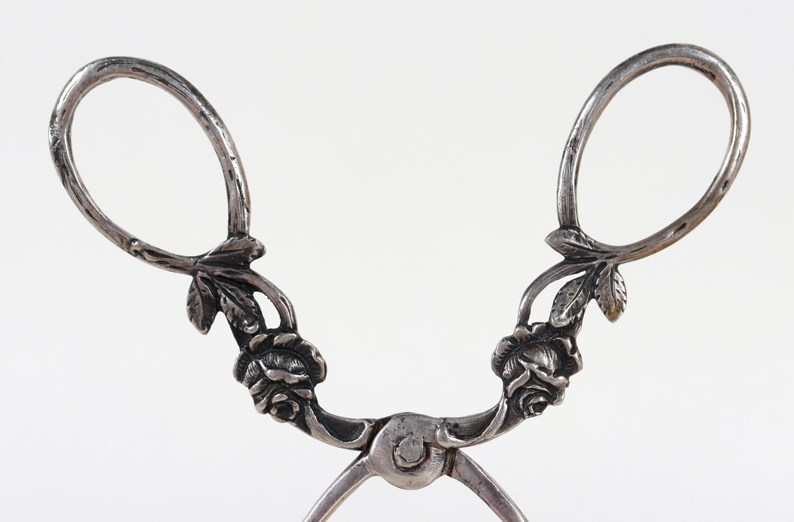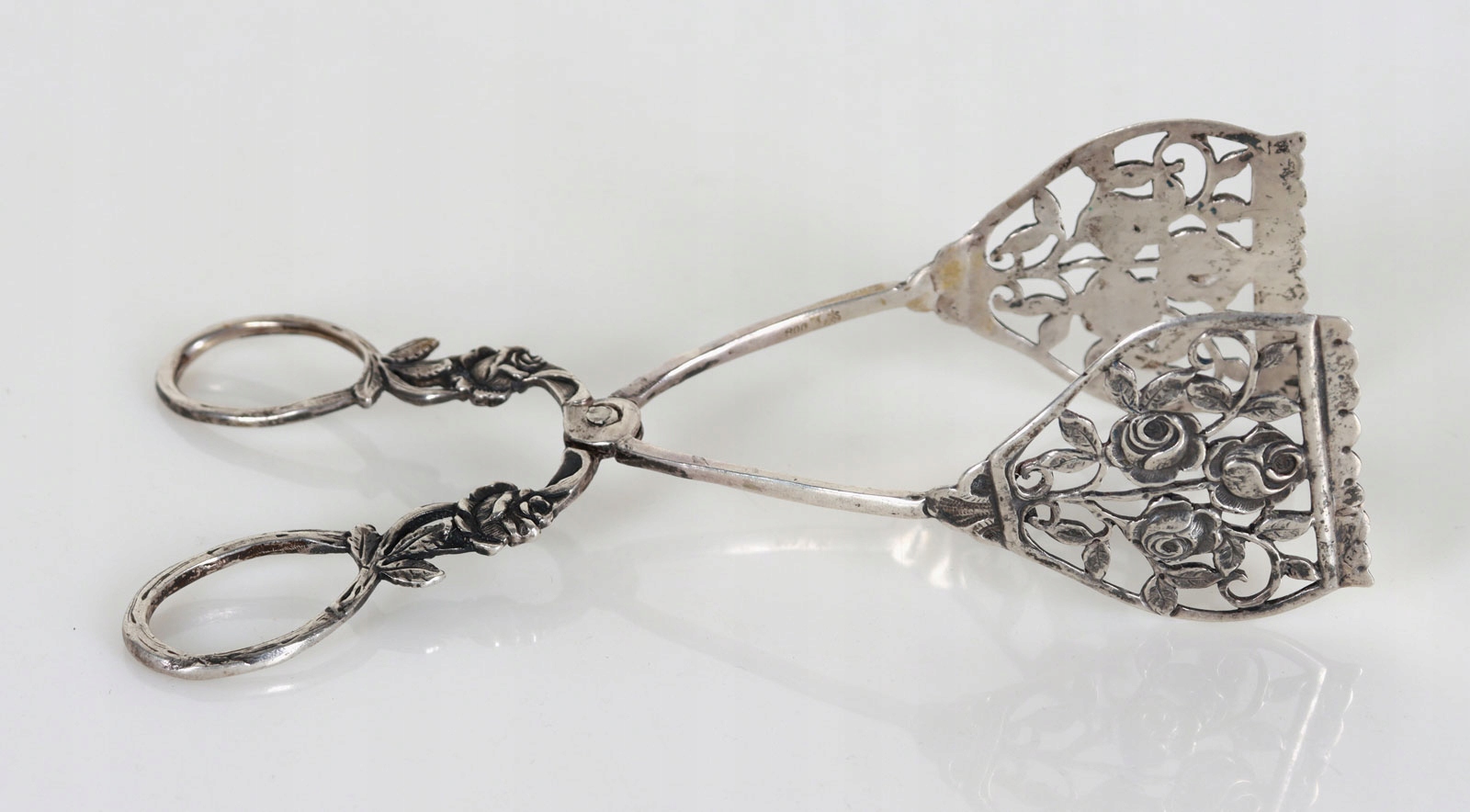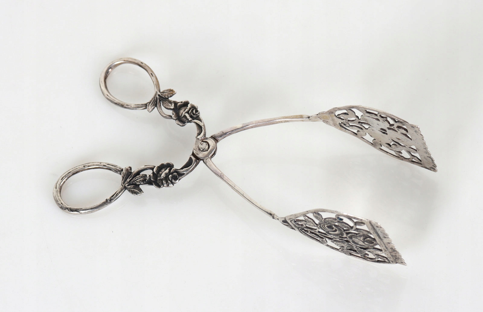 Щипцы для тортаиз серебра 800 пробы. Щипцы украшены мотивом розы.