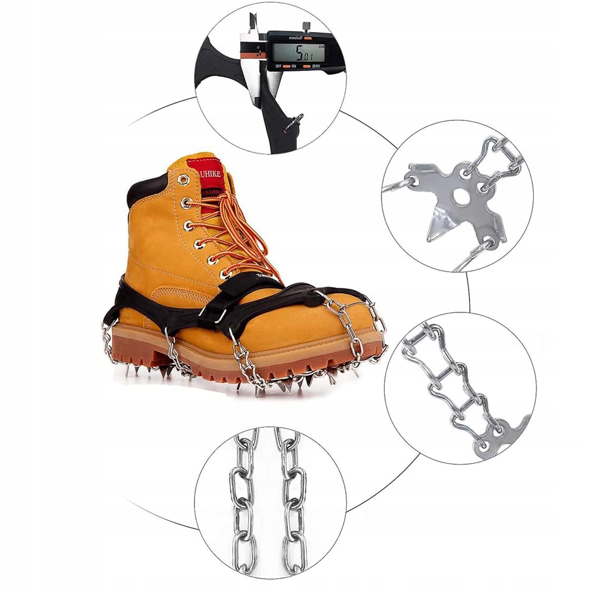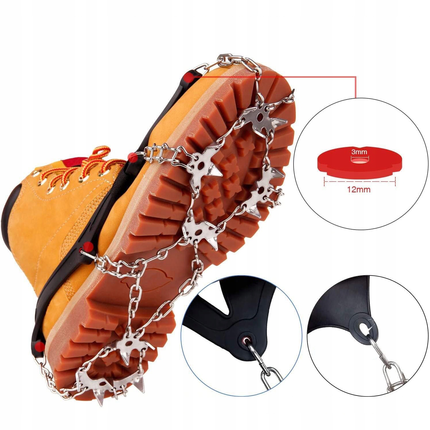 ✅【Утолщенные шипы из улучшенной нержавеющей стали】: Оснащен 19 - зубчатые шипы на ножках и прочная система цепей обеспечивают превосходное сцепление на различных поверхностях, помогают оставаться в безопасности и избегать травм.