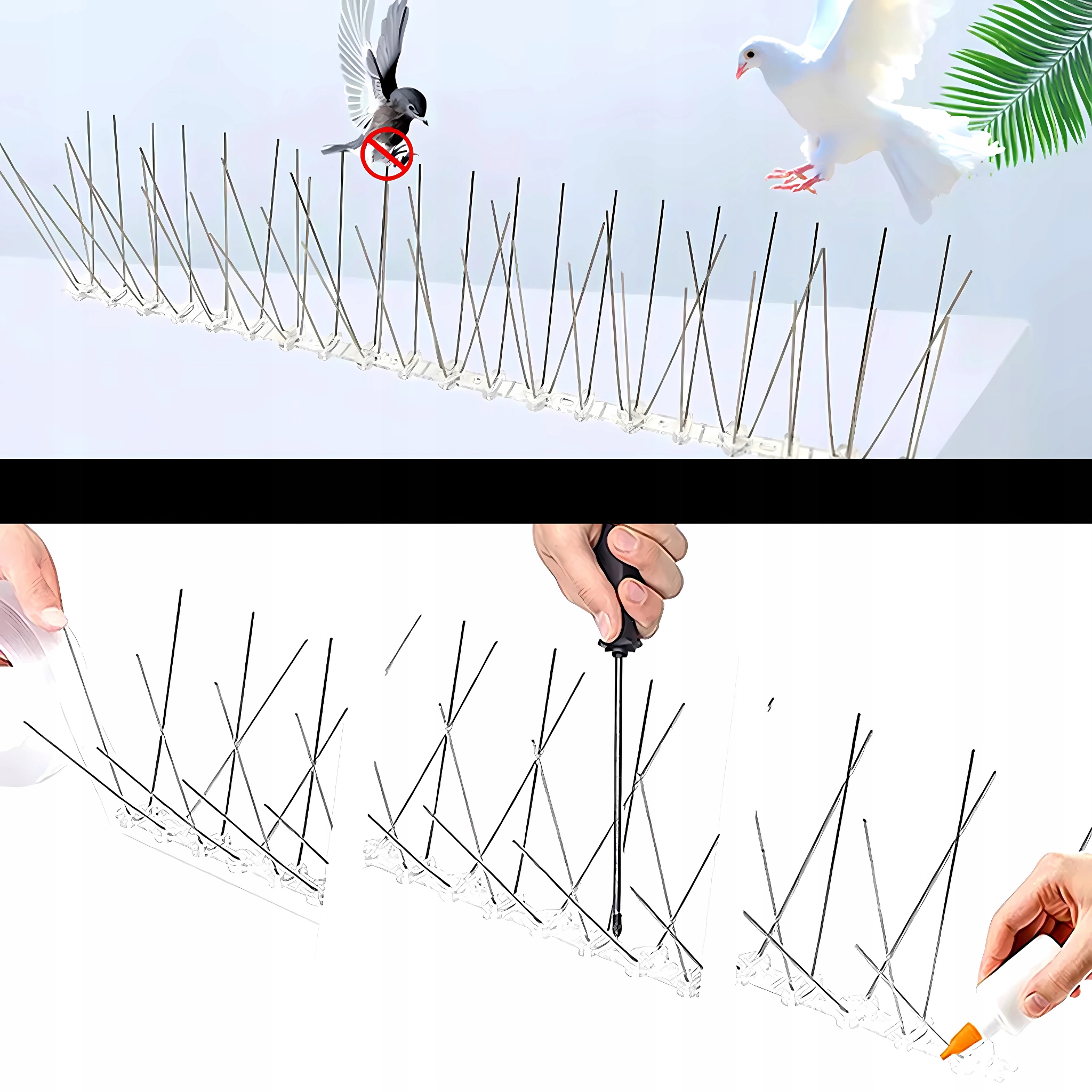 Закрепите свое окружение от нежелательных гостей в виде птиц, таких как голубки, воробья, ласточки и чайки! Наши шипы против птиц являются идеальным решением, которое долгое время гарантирует чистоту и защиту