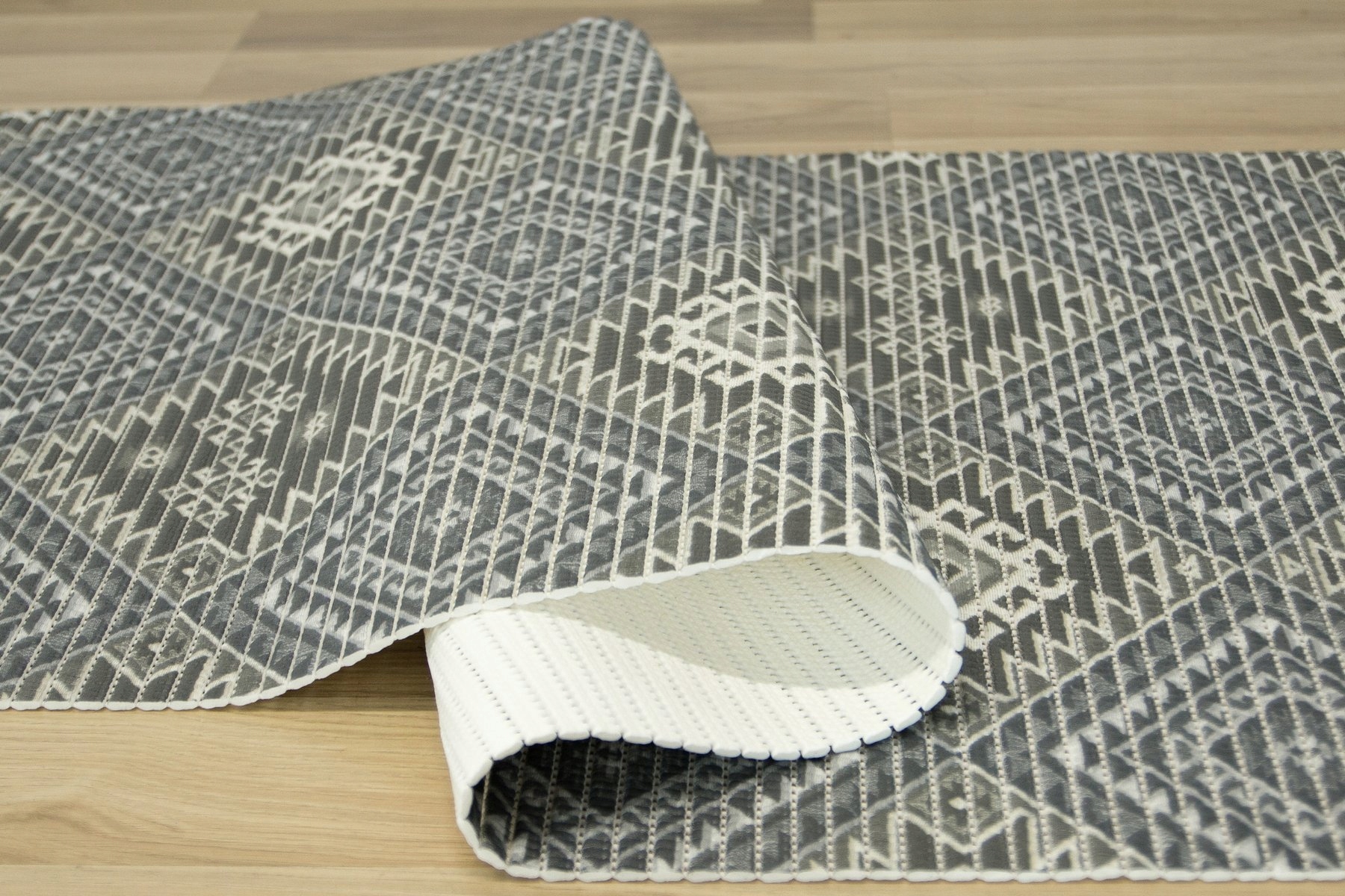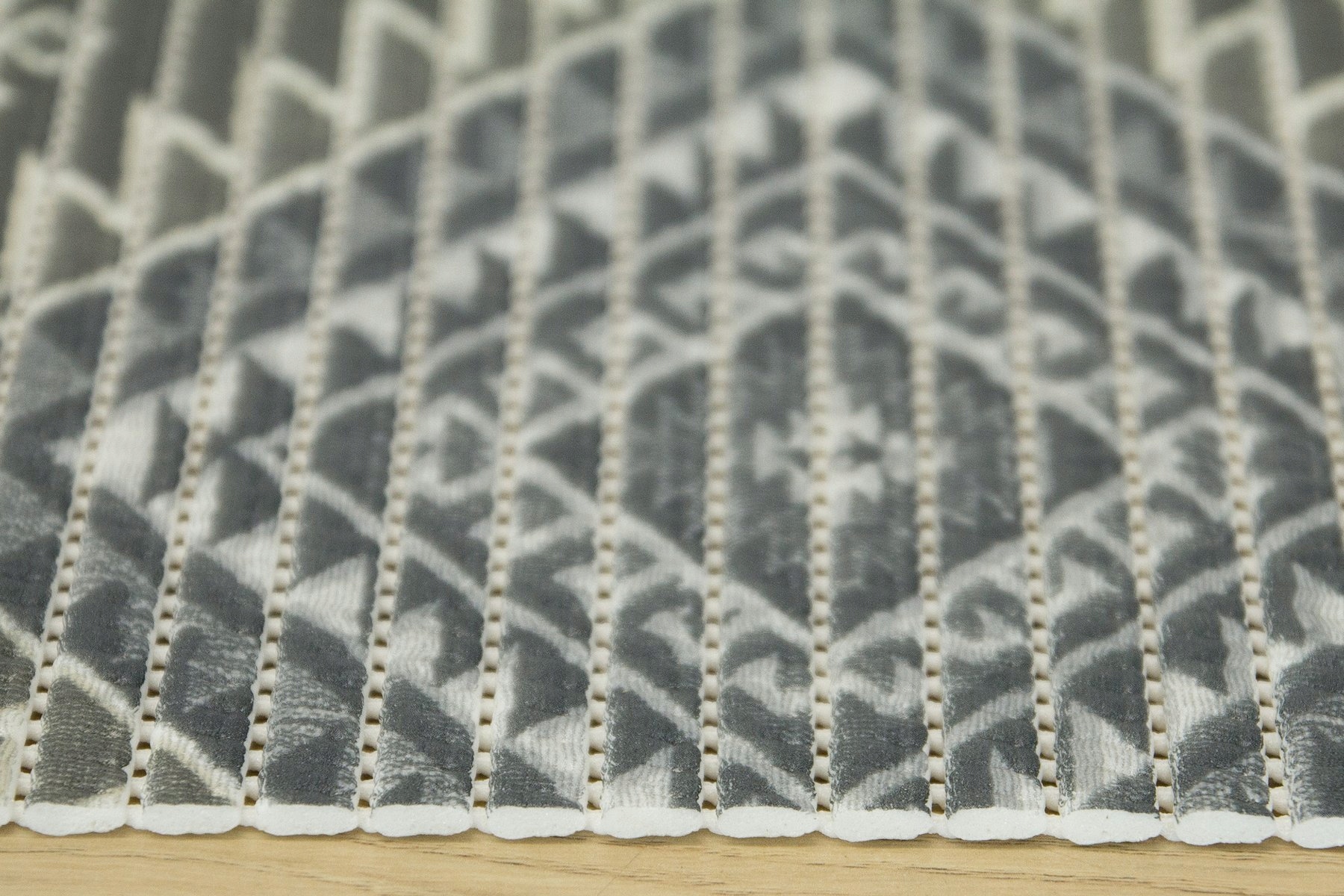 Нескользящий коврик для ванной softy-tex широко используется: в ванной и у бассейна. Модный геометрический ацтекский узор нейтрального серого цвета позволит вам подобрать этот противоскользящий коврик ко многим ванным комнатам.