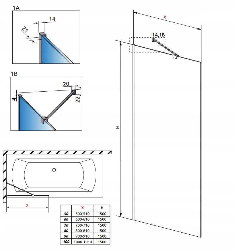 - Безопасное закаленное стекло толщиной 8 мм.