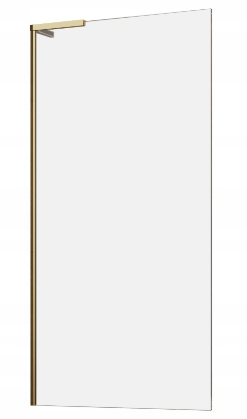 Предмет продажи — цельная шторка для ванныModo SL Gold PNJ II в левом исполнениииз прозрачного стекла с блестящими золотыми профилями. Экран стационарный стационарно крепится к стене рядом с ванной.