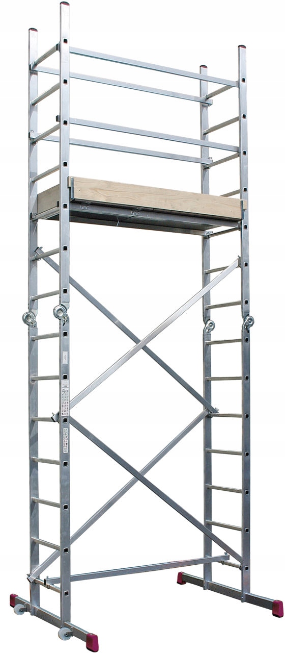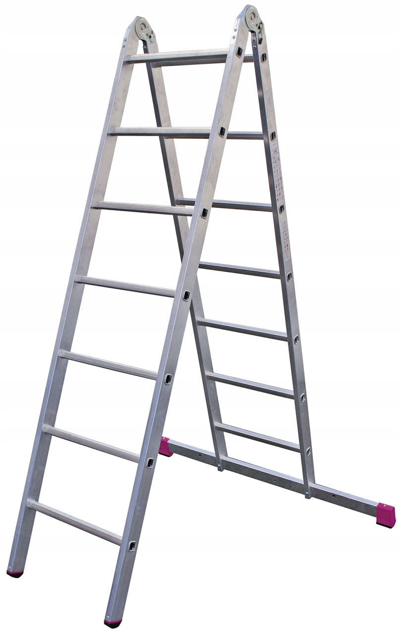 Система лестничных лесов для универсального использования. В качестве рабочих подмостей с рабочей высотой ок. 4,85 м, две отдельные приставные лестницы с 14 ступенями или две отдельные двухсторонние шарнирно-сочлененные лестницы с 2x7 ступенями.