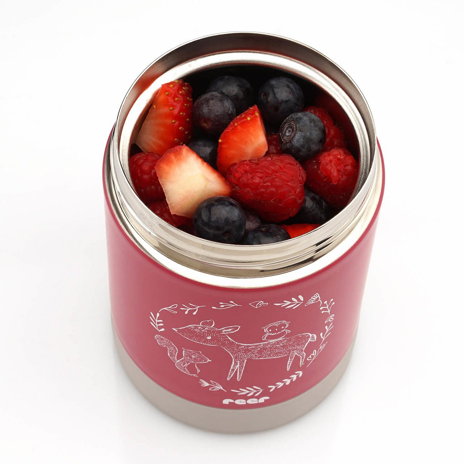 Практичный обеденный термос емкостью 300 мл пригодится каждой маме на прогулке с ребенком. Он может вместить нужное количество супа или других блюд, сохраняя при этом температуру. Он наверняка будет незаменим и в путешествии. В нем можно хранить как горячую, так и холодную еду. Однако помните, что его нельзя использовать для молока или других продуктов на основе молока.