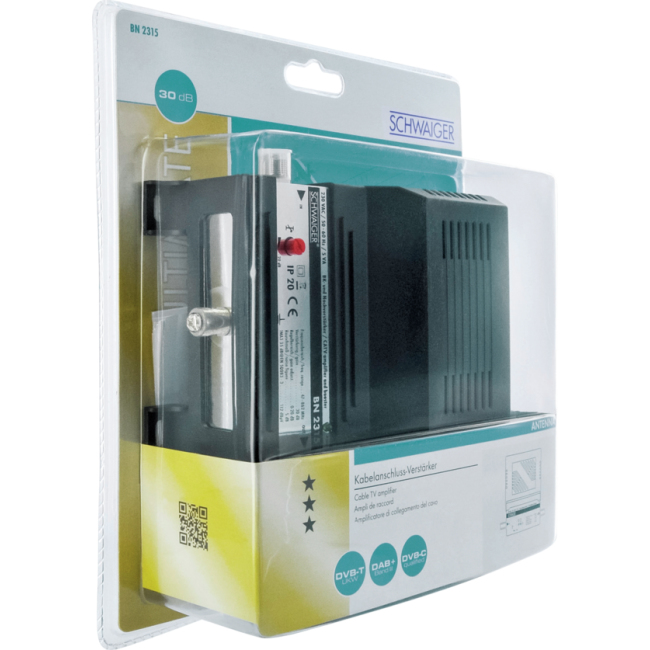 Кабельный усилитель сигнала SCHWAIGER® – 30 дБ, с регулировкой уровня сигнала