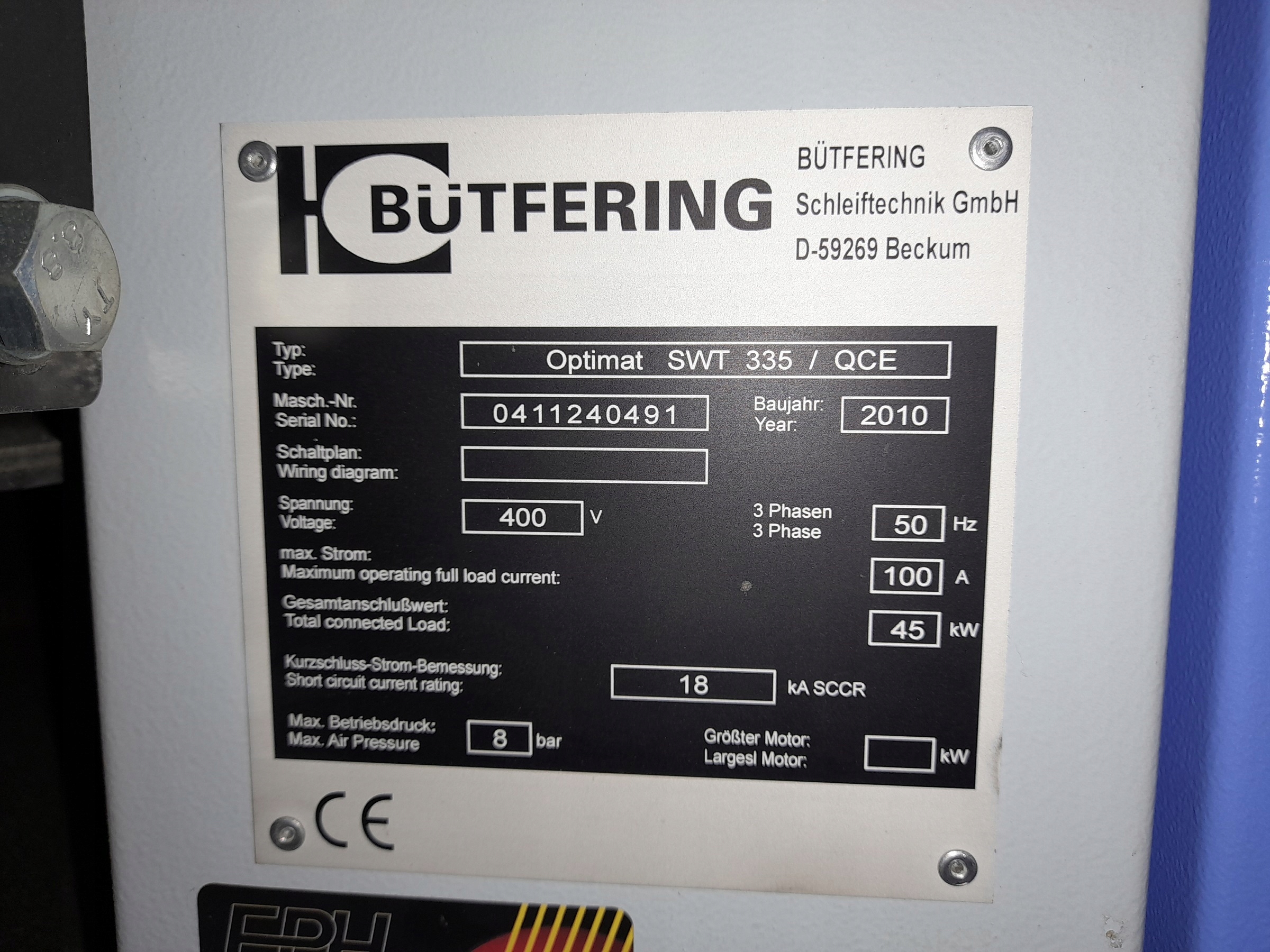 Широколенточная шлифовальная машина BÜTFERING SWT 335 QCH — б/у, идеальное состояние, 2020 г.