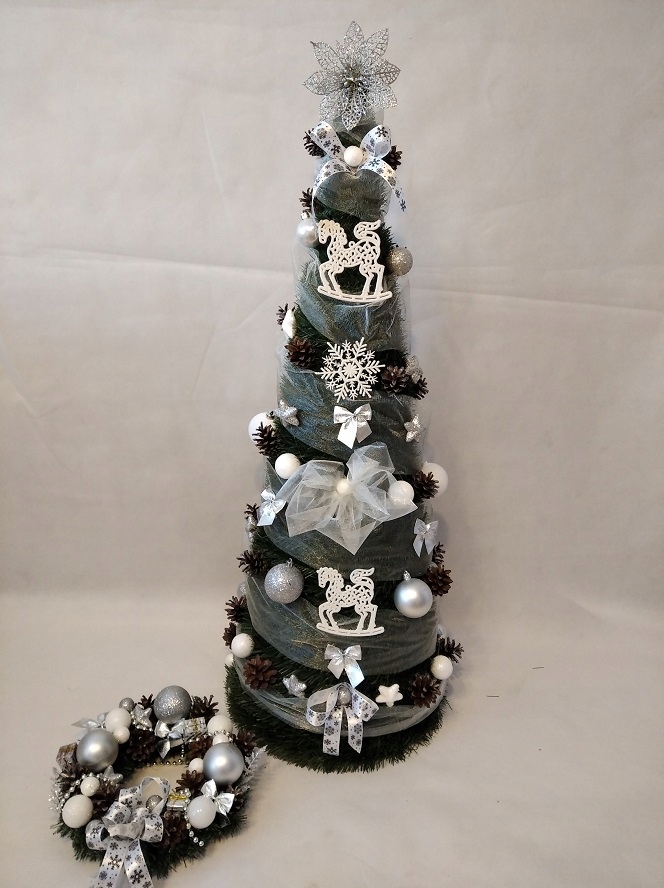 5. СЕРЕБРЯНО-БЕЛЫЙ С ДЕКОРОМ РОЖДЕСТВЕНСКОЙ ЕЛКИ