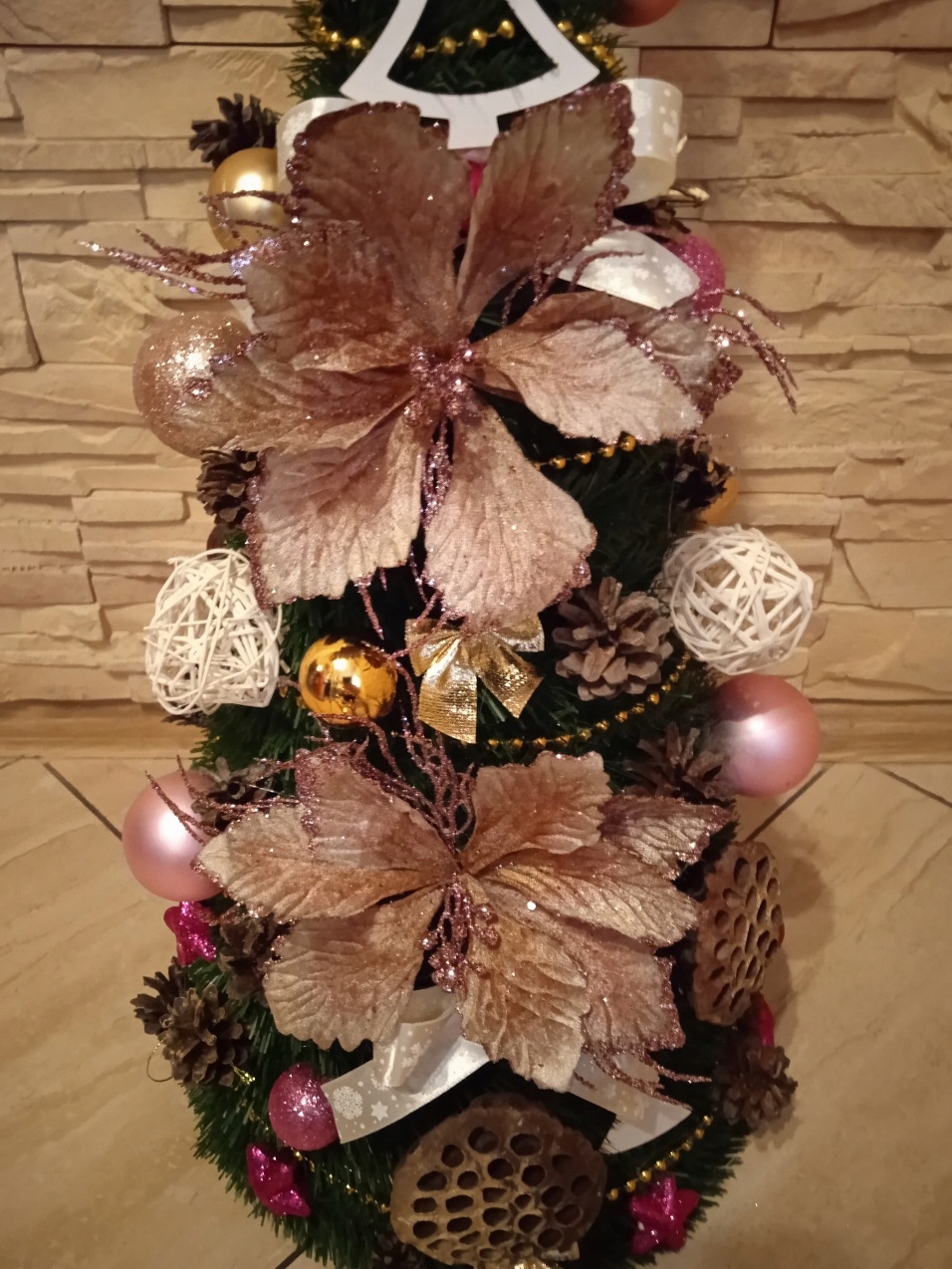 Мы изготавливаем елки с украшениями следующих цветов: серебряный, белый, золотой, синий, красный, коричневый, зеленый, фиолетовый или смешанный, напр. золотой и красный.