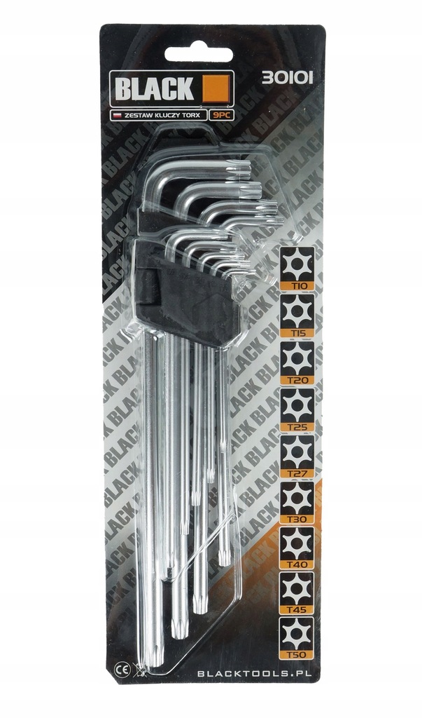 ШЕСТИГРАННЫЕ КЛЮЧИ TORX ТИПА L с отверстием T10-T50, 9 шт. 30101, ЧЕРНЫЙ