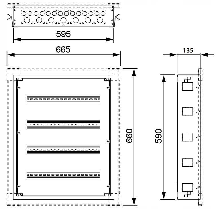 595 x 590 x 135 мм - коробка скрытого монтажа