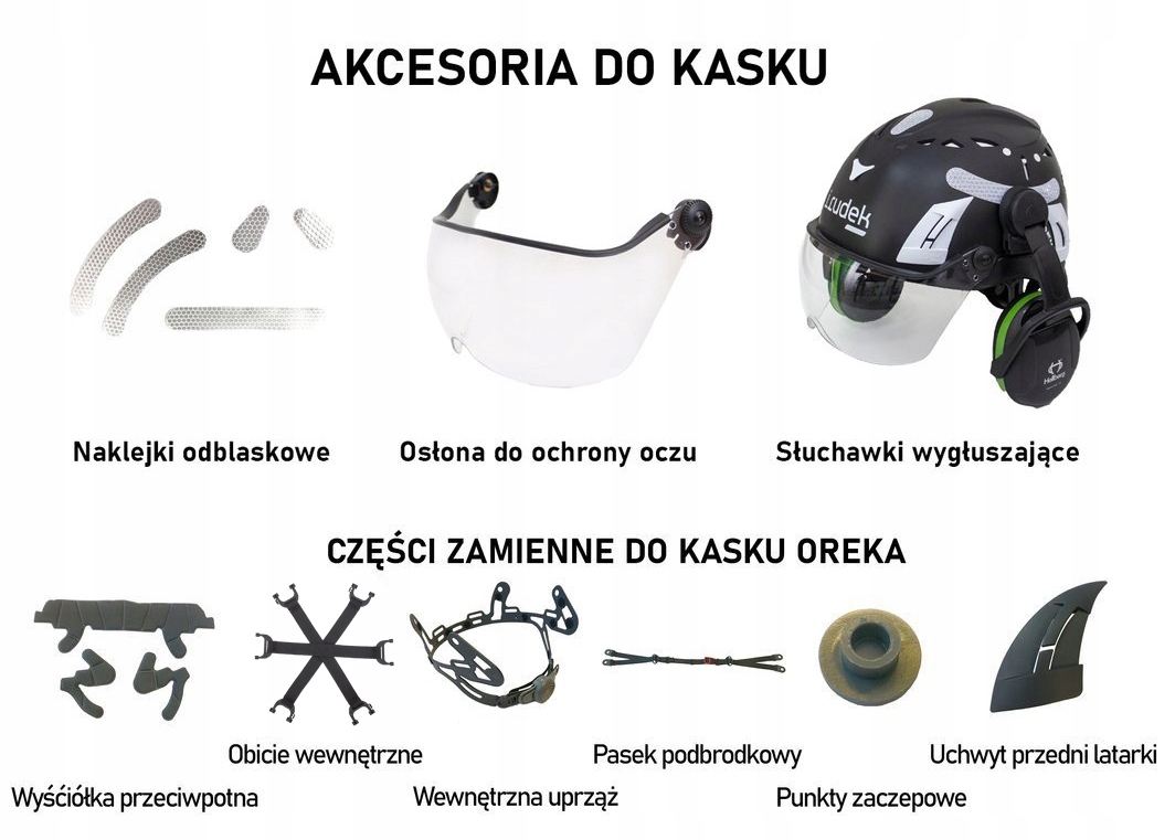 Модель шлема Oreka позволяет легко расширить возможности использования шлема. Он позволяет легко установить козырек для защиты глаз, прикрепить наушники с шумоподавлением и прикрепить светоотражающие наклейки.