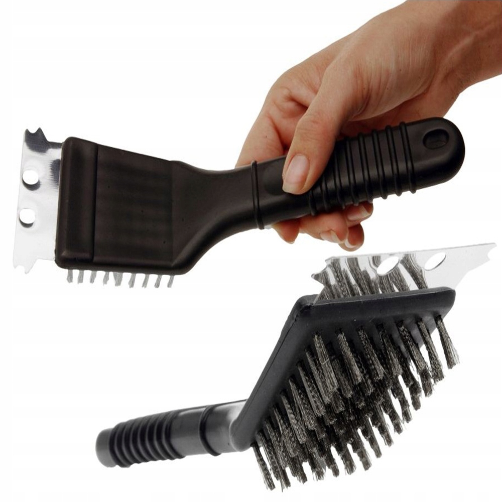 Также щетка оснащена скребком, с помощью которого можно удалять с решетки пригоревшие остатки пищи.