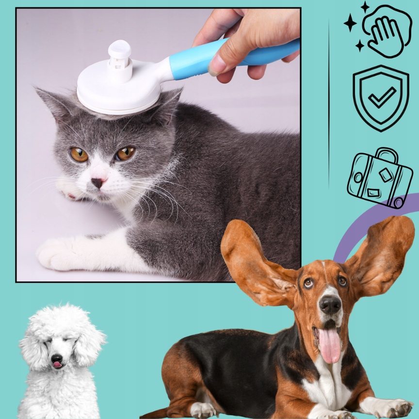Самоочищающаяся щетка для домашних животных — это инновационный инструмент, который не только удаляет отмершие волосы, но также массирует и стимулирует кожу вашего питомца. Благодаря своему специальному дизайну щетка идеально подходит для всех типов шерсти: от длинной до вьющейся и спутанной, обеспечивая вашему питомцу комфорт и расслабление во время ежедневного ухода.