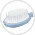 Закругленные зубцы расчески не раздражают чувствительную кожу, а синтетический ворс щетки гарантирует безопасный и приятный уход за нежными волосиками вашего малыша.