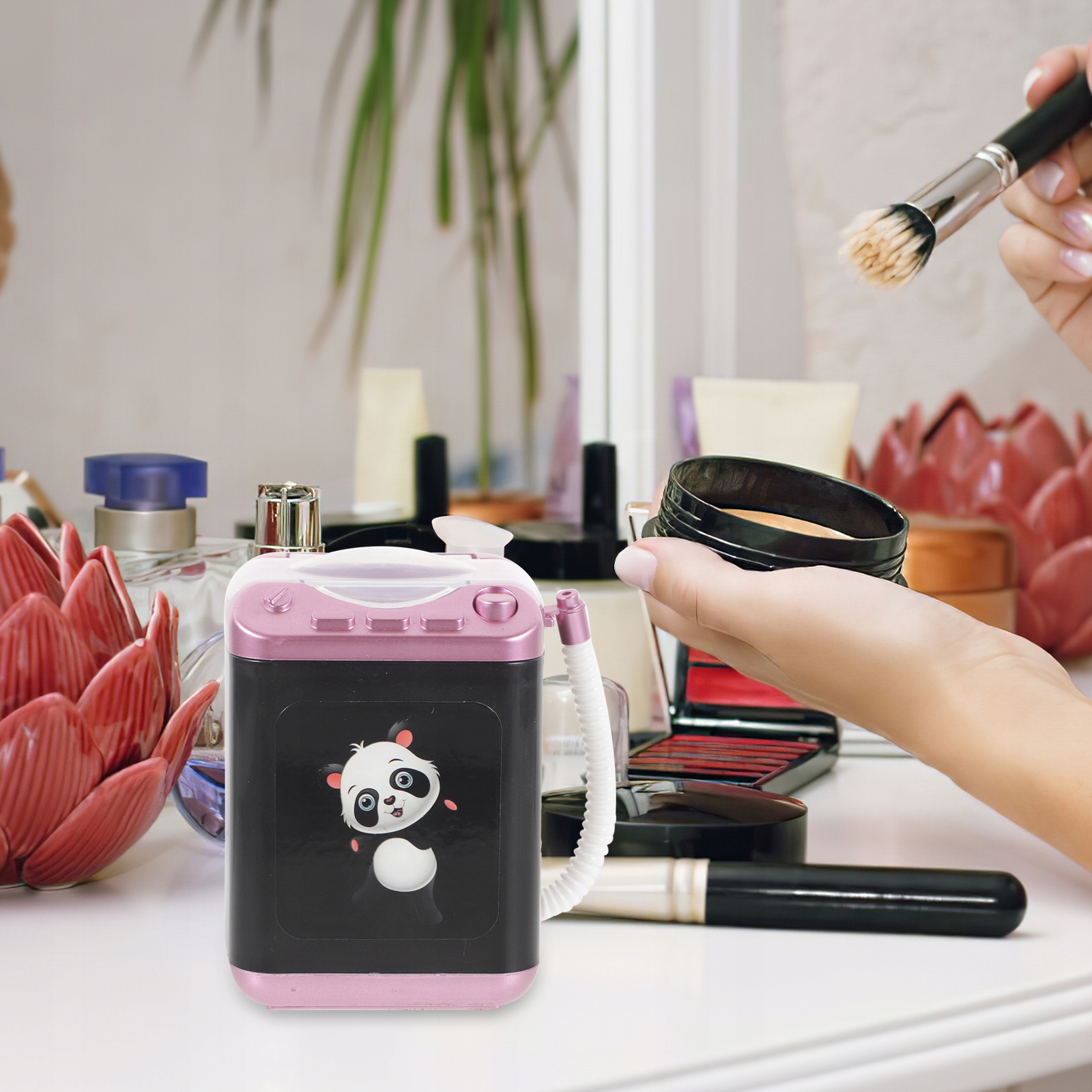 Мини-стиральная машина позволяет за короткое время очистить кисти, яйца для макияжа и пуховки, удаляя при этом все румяна и пудру, сохраняя кисть чистой.