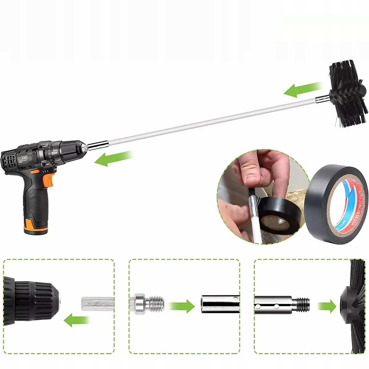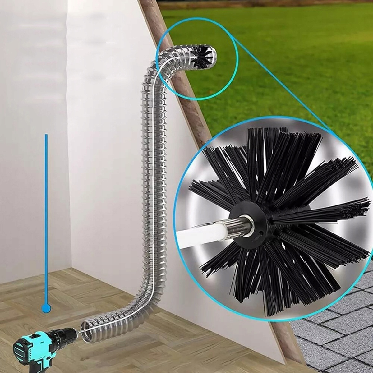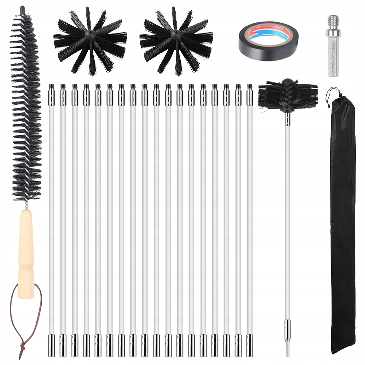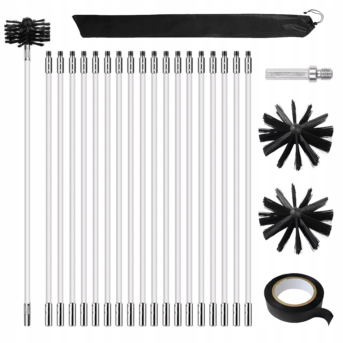 Данный комплект трубочиста используется для чистки всех типов труб, каминов, дымоходов, вытяжек, сушилок, дровяных печей и других устройств, решая все гигиенические проблемы. Его можно переключить в автоматический режим очистки за считанные секунды с помощью электродрели.