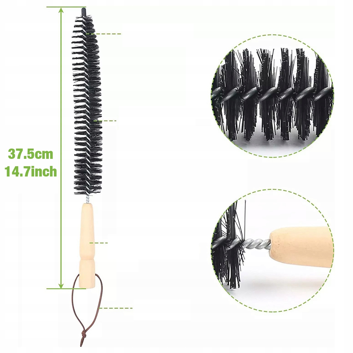Соединительная трубка изготовлена из полимера и твердого сплава, устойчивого к коррозии, мягкого и небьющегося. Подходит для очистки изогнутых труб. Головка щетки изготовлена из нейлона, устойчивого к высоким температурам и старению.