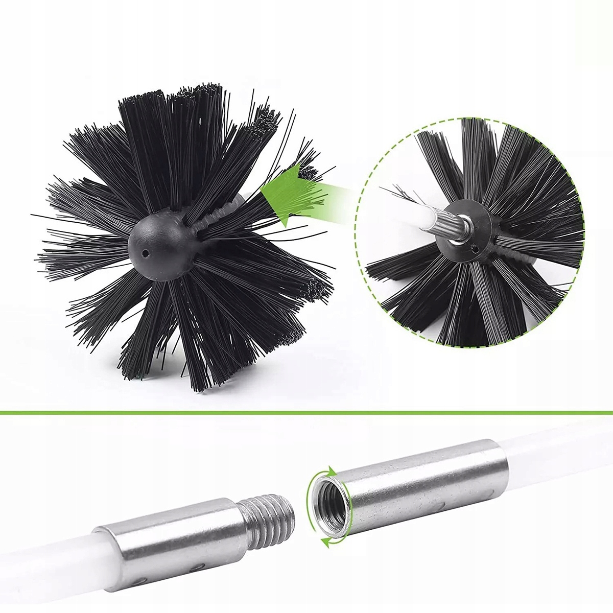 ▶️ Диаметр головки щетки составляет 6 дюймов. Перед покупкой проверьте диаметр дымохода, чтобы избежать ухудшения эффективности очистки.